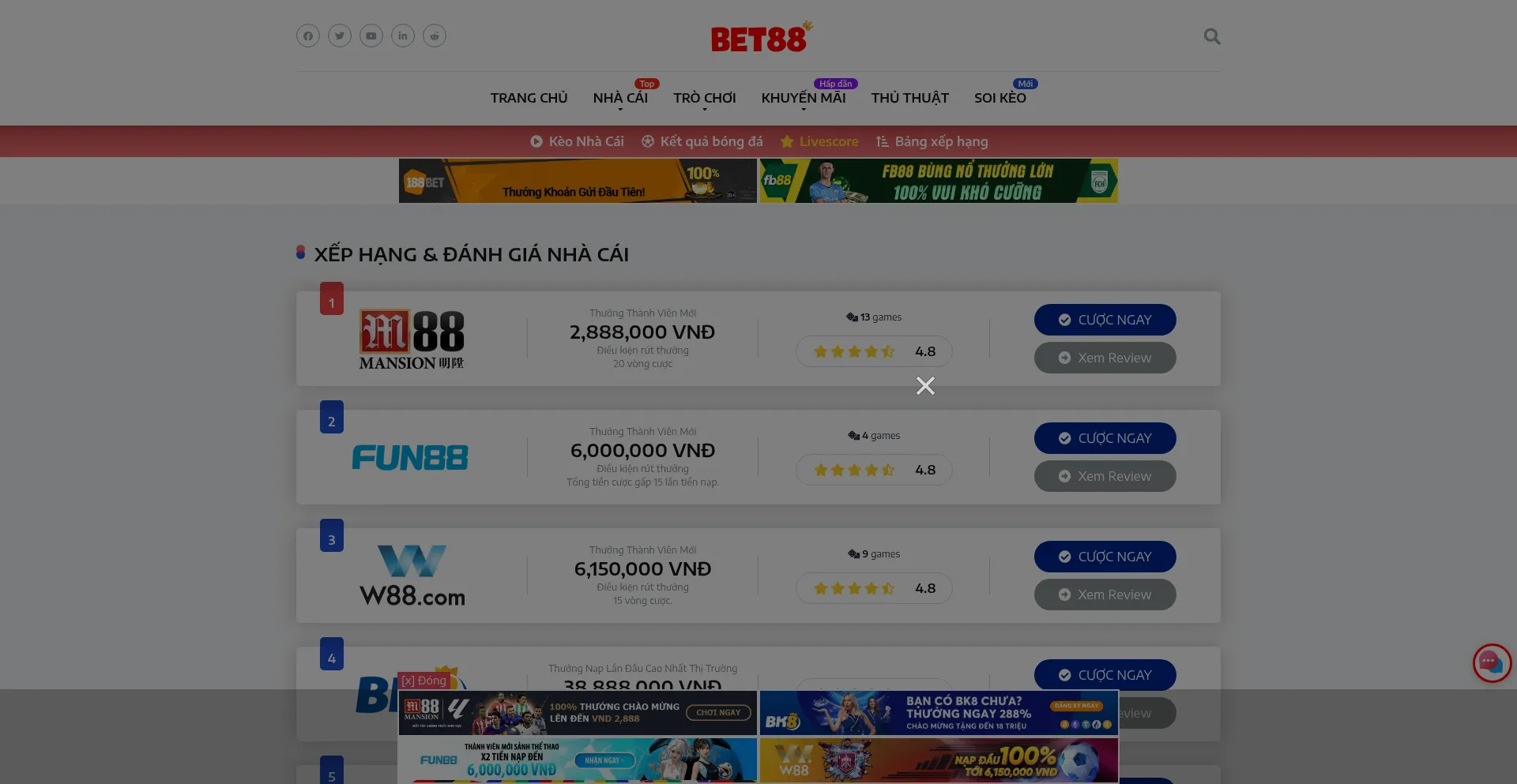 BET88 - Chuyên xếp hạng và đánh giá nhà cái cá cược trực tuyến