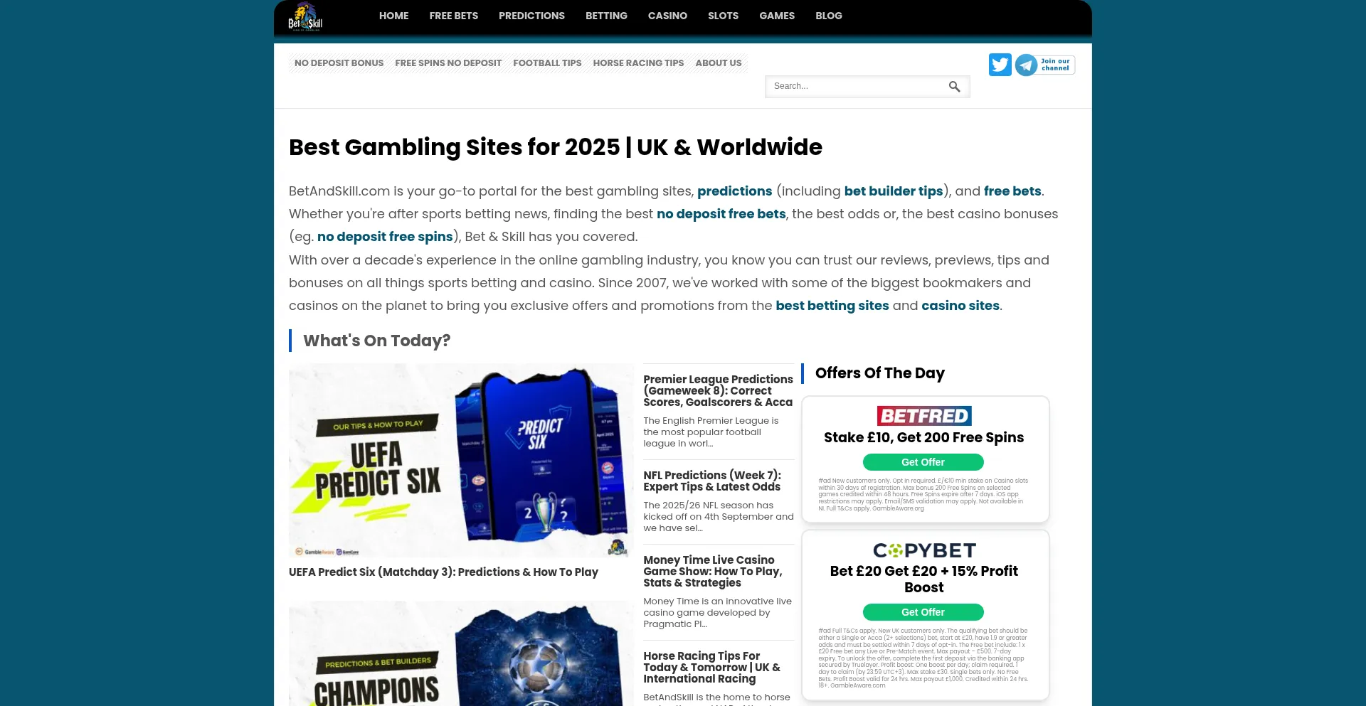 Your go-to portal for the best gambling sites, betting tips, predictions, and free bets. Whether you're after sports betting news, finding the best no deposit free bets or, the ...