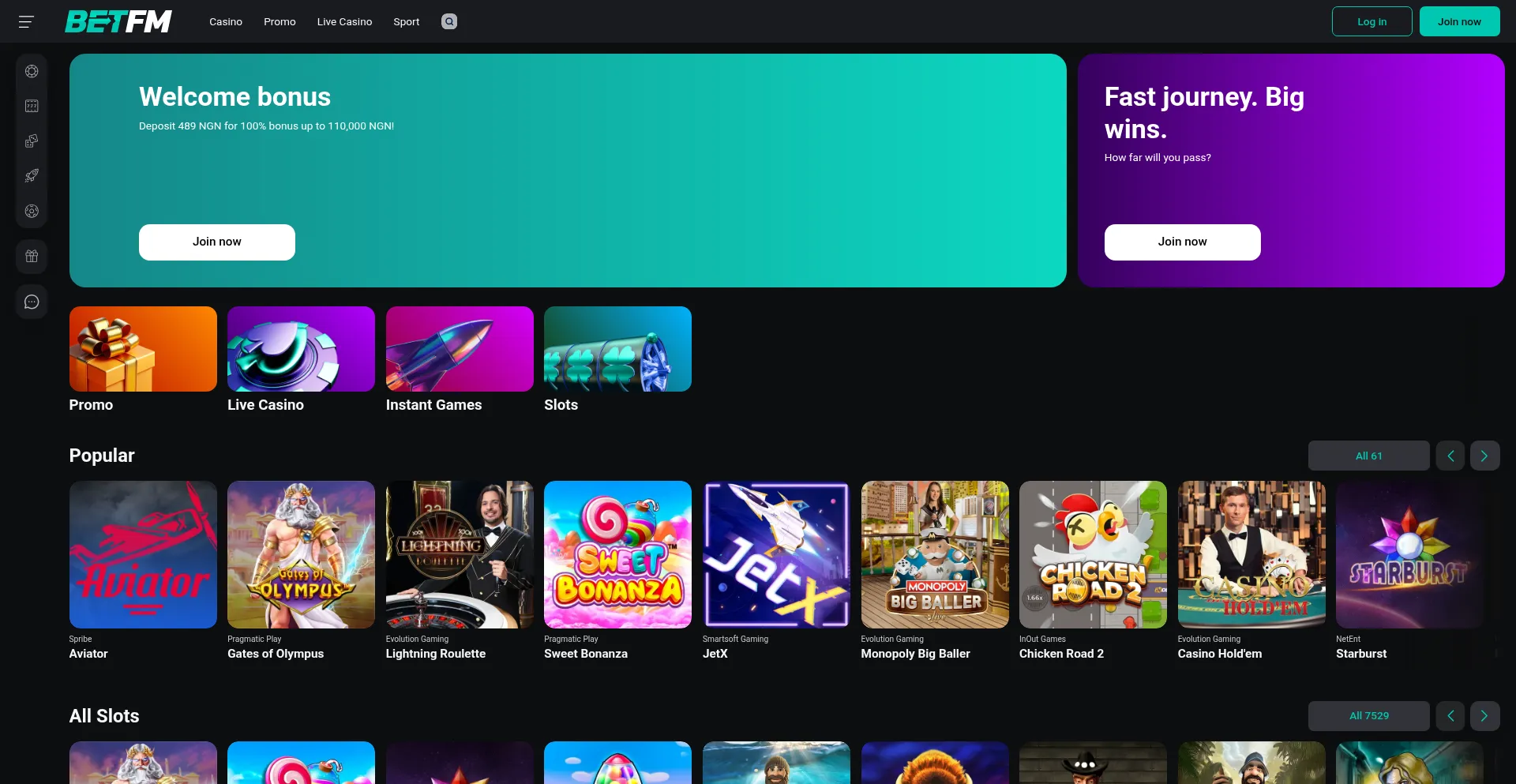 Join BetFM Nigeria – your trusted online casino and sports betting platform. Play top slots, virtual games, and live sports with secure NGN payments and exciting bonuses.