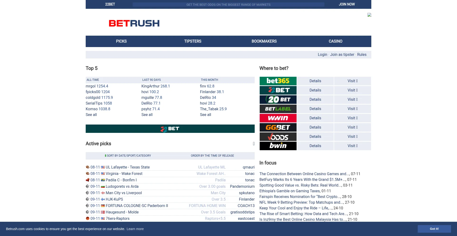 Get hundreds of free picks daily by the best tipsters of Betrush.com