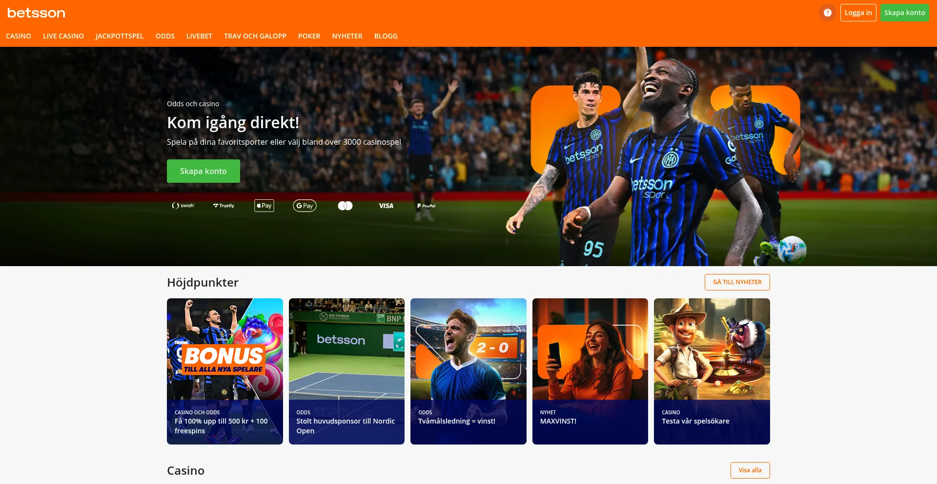 Välkommen till Betsson! Hos oss hittar du odds på dina favoritsporter, casino med tusentals spel och förstklassig poker. Vi ger dig underhållning när den är som bäst.