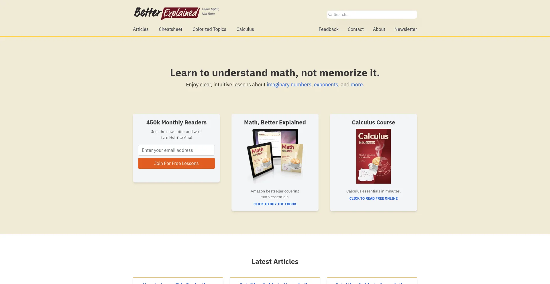 网站上存在社交媒体链接表明 betterexplained.com 在社交媒体上维护官方账户,这是可信度和参与度的积极信号。