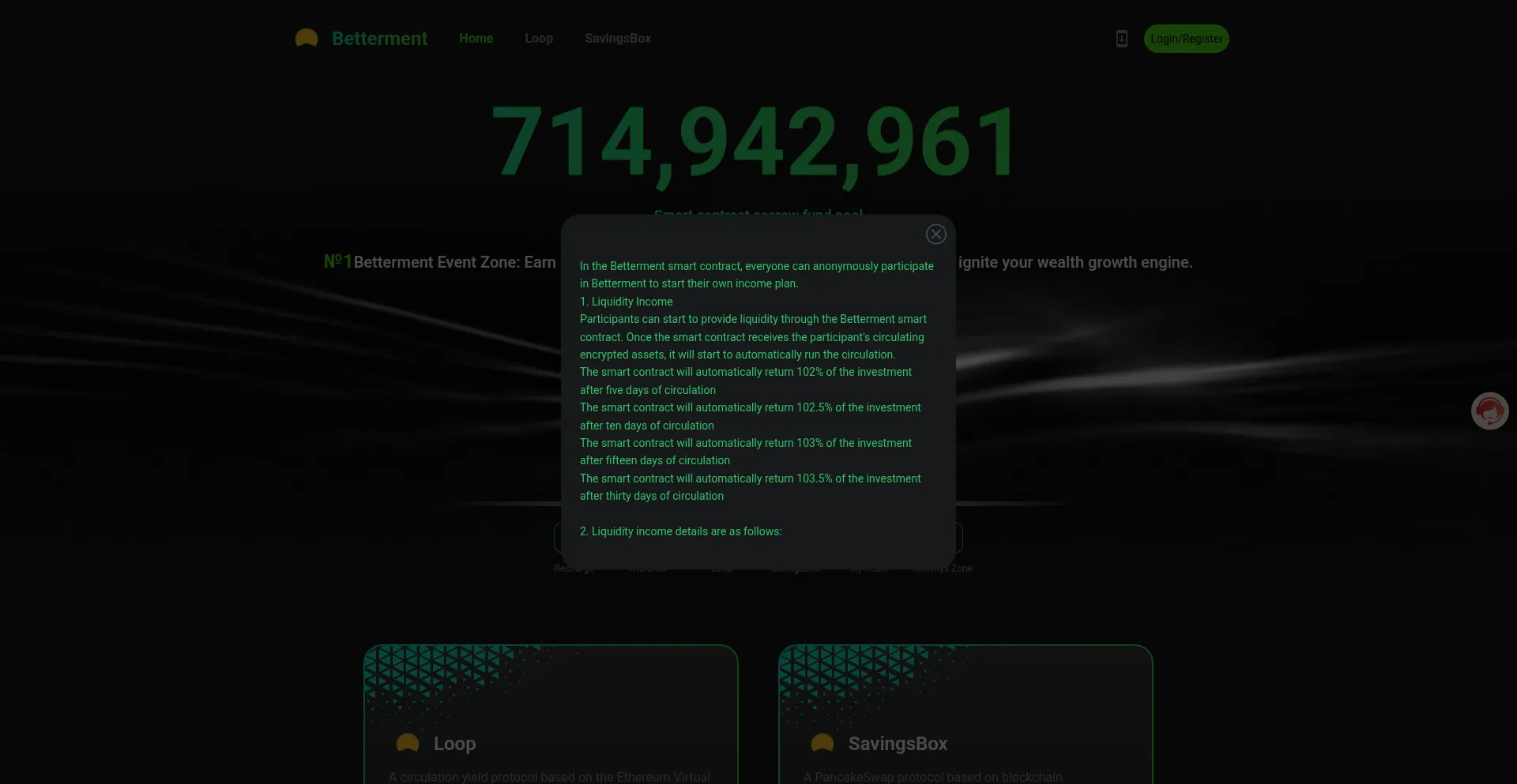 In the Betterment smart contract, everyone can anonymously participate in Betterment to start their own income plan.