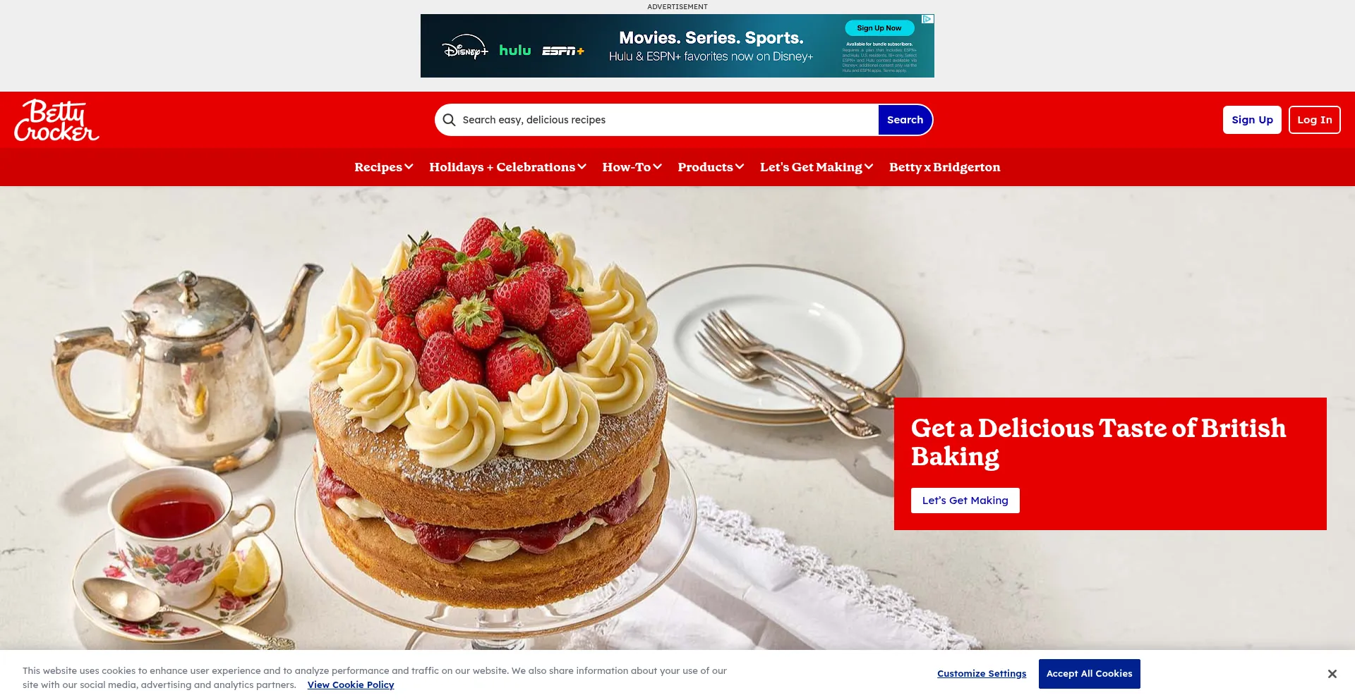 该网站实现符合GDPR或CCPA等隐私法规的cookie同意机制。这表明 bettycrocker.com 遵守数据保护标准并为用户提供对个人数据收集实践的控制。