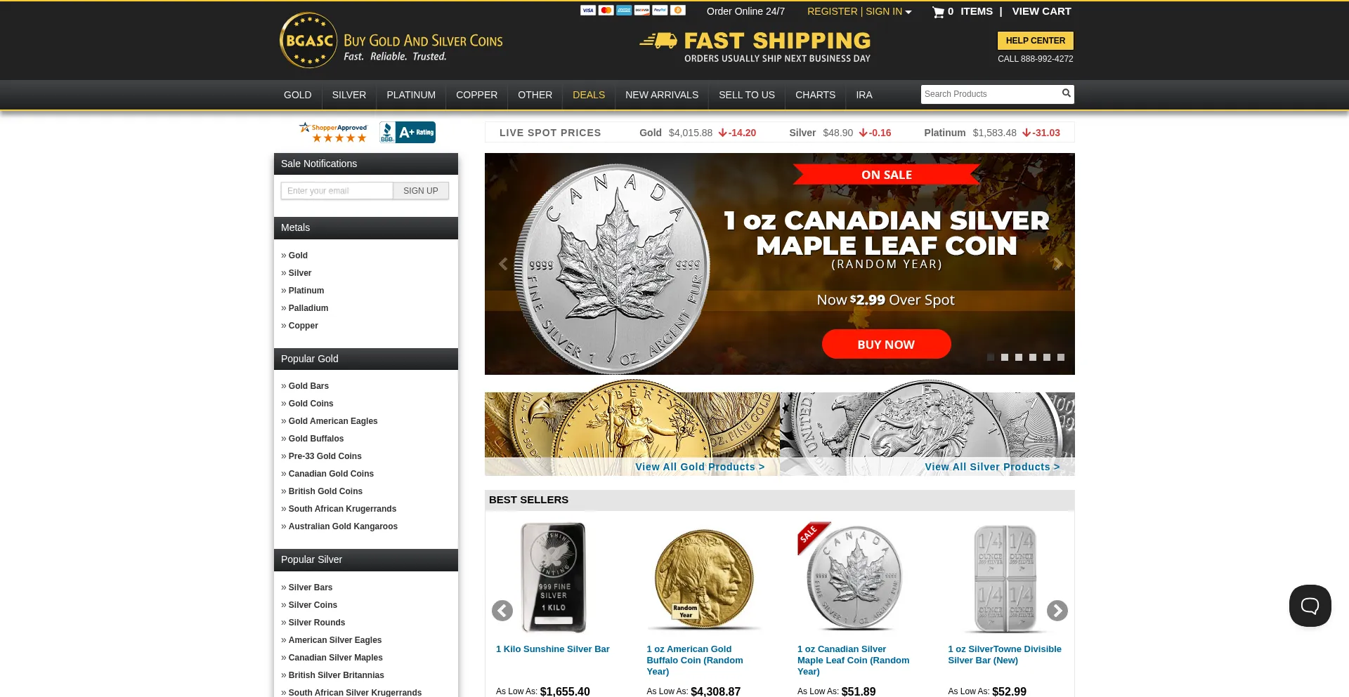 Buy Gold and Silver Bullion Online at BGASC. FREE Shipping on $199+ Orders. Immediate Delivery - Call Us 888-992-4272.