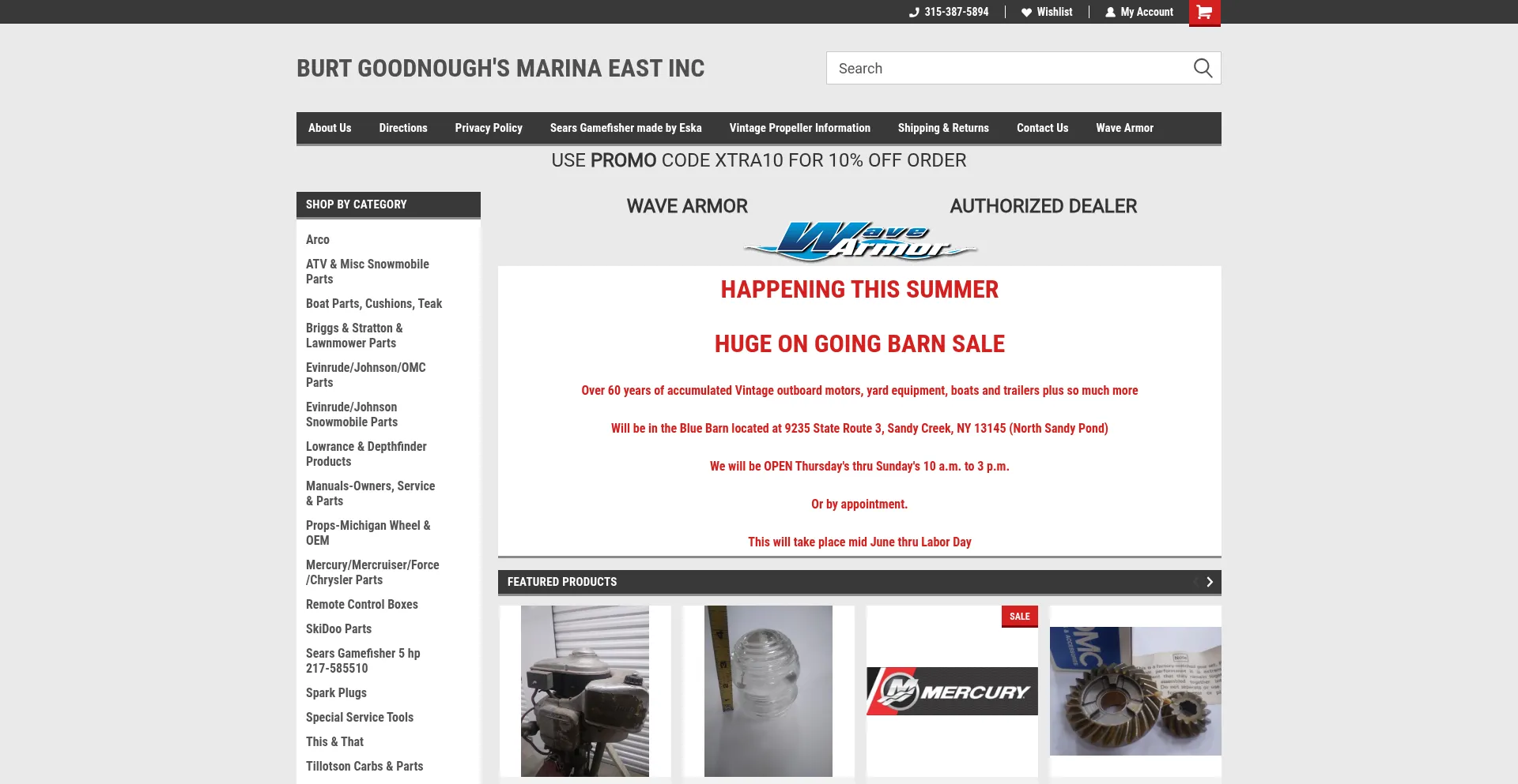 Marina located on Sandy Pond NY. Large availability of NLA and Vintage new and used parts for outboards, snowmobiles and more.