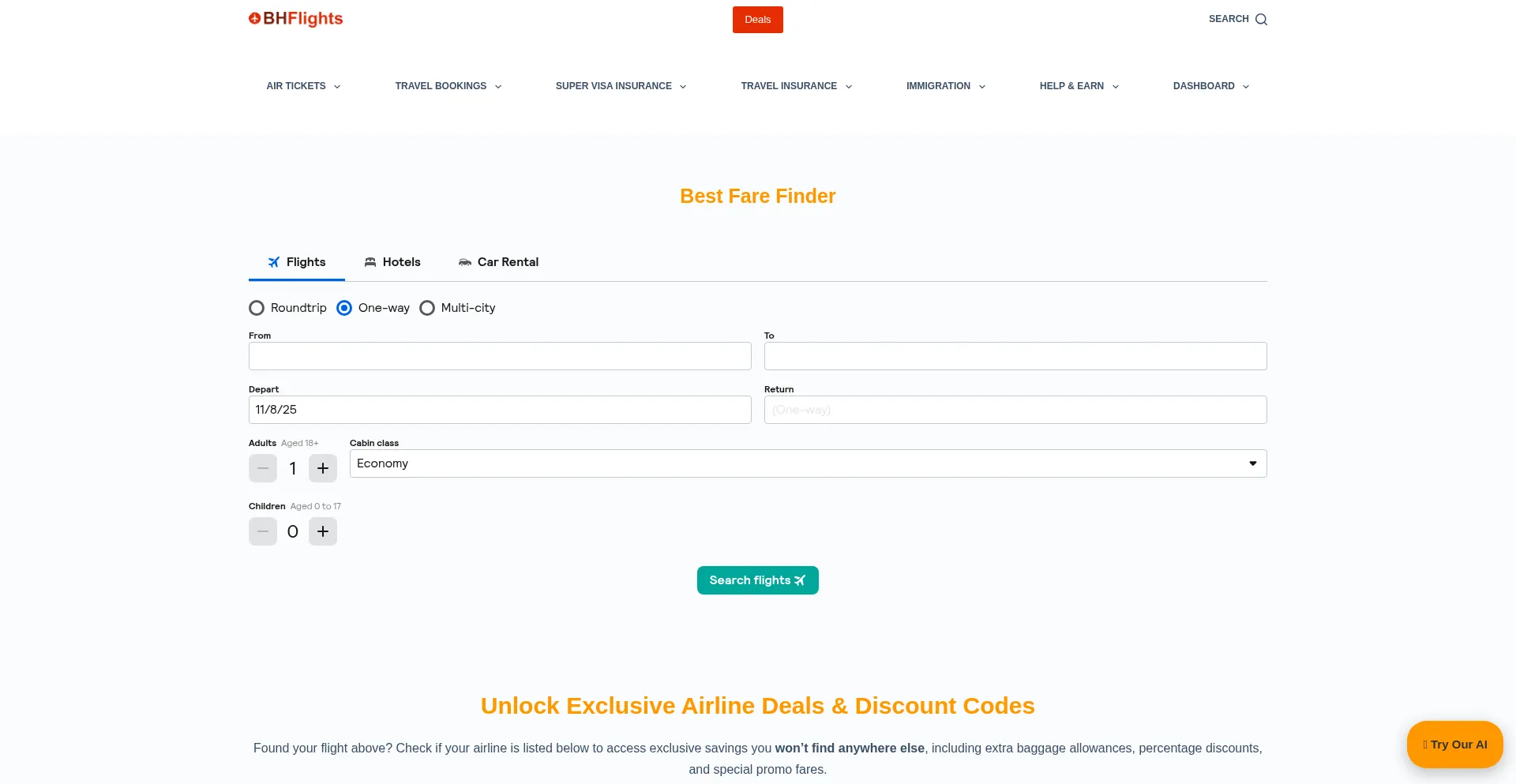 The best fare finder, save even more with special discount codes from airlines. Bhflights - Your Travel Hub.