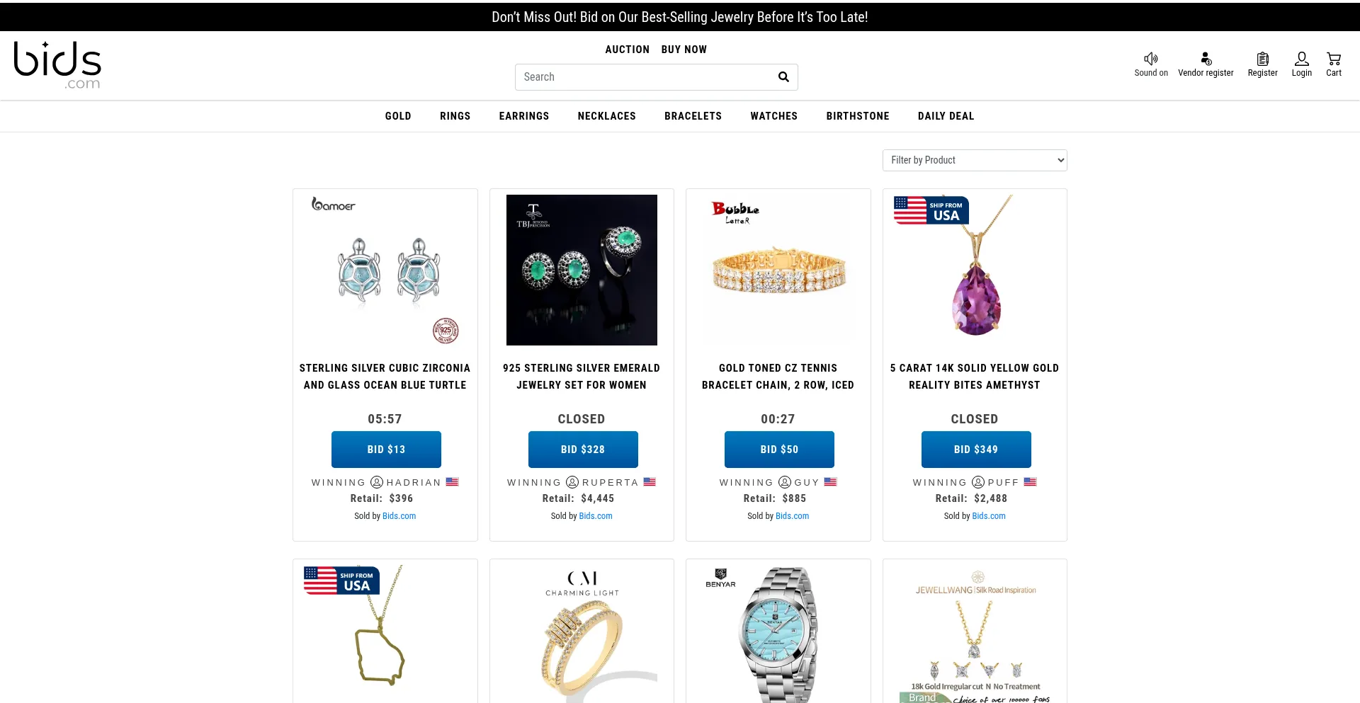 Auctions, Buy Now, Make an Offer - BIDS.COM Engagement Rings, Gold and Diamond Jewelry, Jewellery, Watches, Designer Bags, Clothing, Shoes, Sunglasses, Accessories, Arts Ring - ...