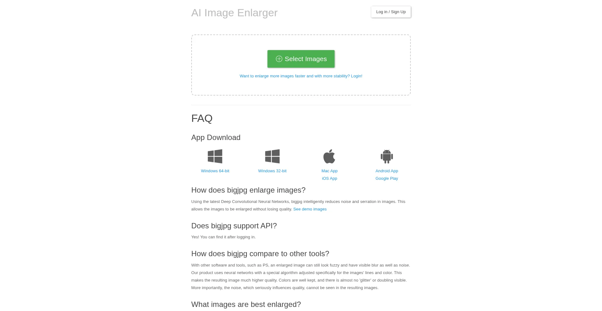 bigjpg.com 拥有可用的 iOS 移动应用程序,表明为 Apple 设备用户提供跨平台可访问性。