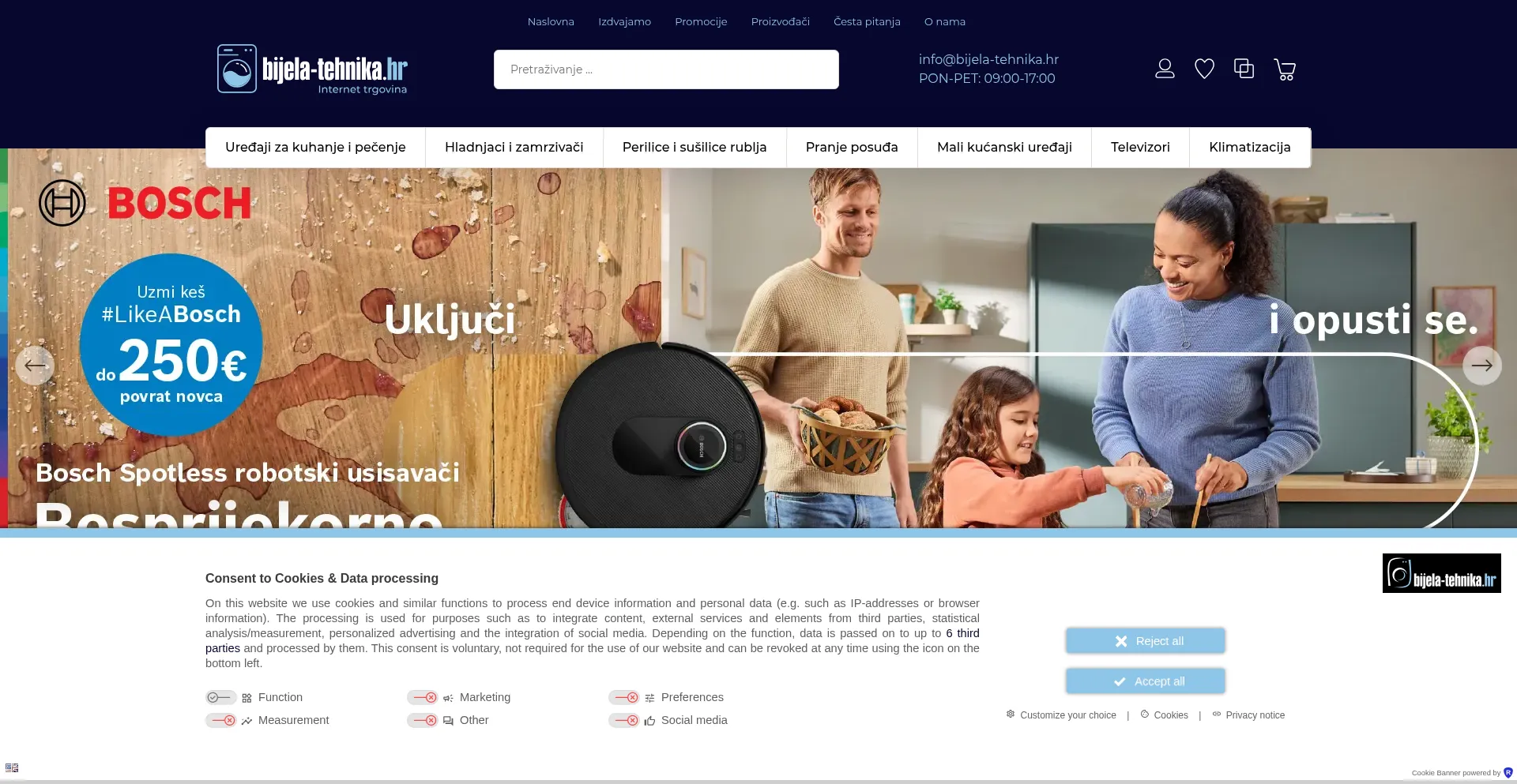 该网站实现符合GDPR或CCPA等隐私法规的cookie同意机制。这表明 bijela-tehnika.hr 遵守数据保护标准并为用户提供对个人数据收集实践的控制。