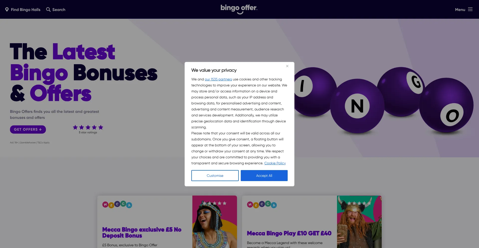 该网站实现符合GDPR或CCPA等隐私法规的cookie同意机制。这表明 bingo-offer.com 遵守数据保护标准并为用户提供对个人数据收集实践的控制。