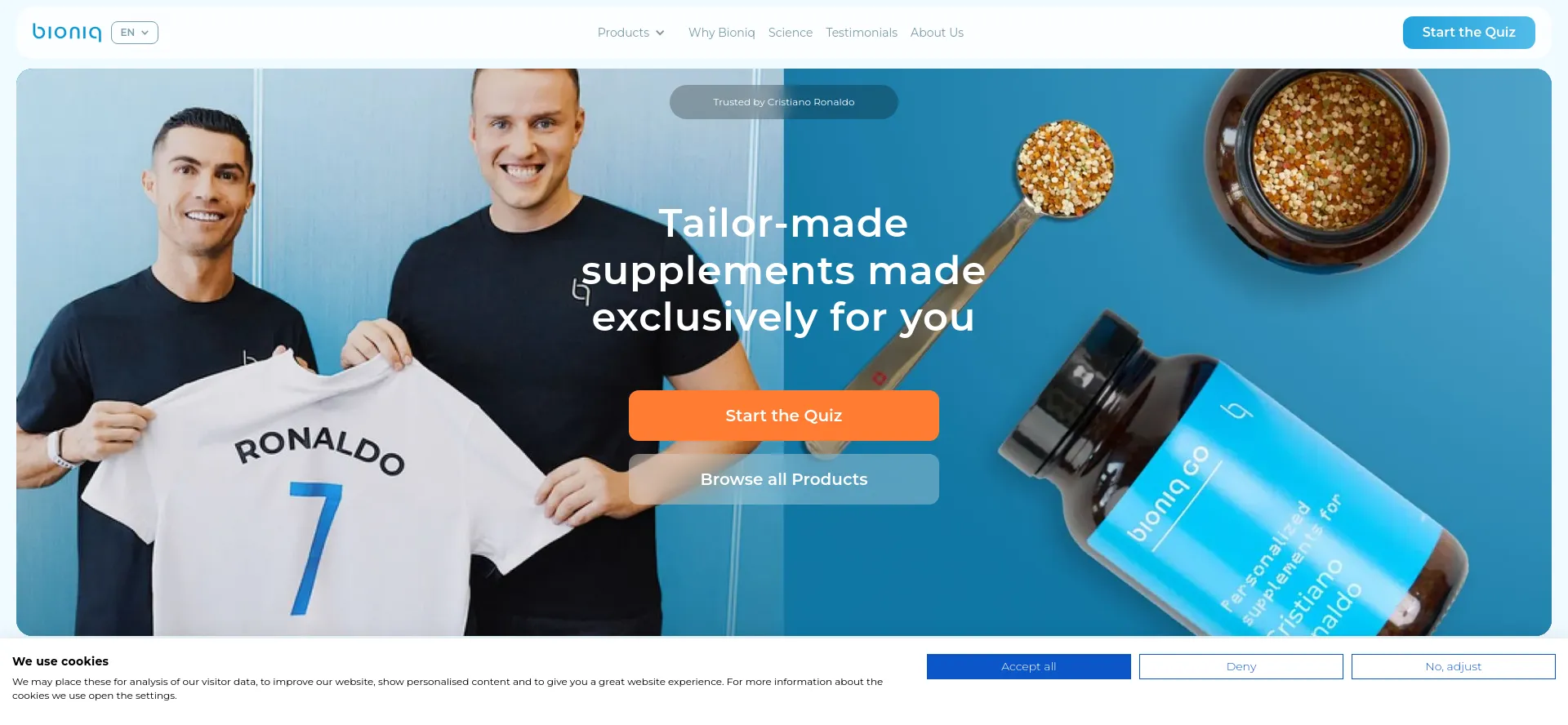 该网站实现符合GDPR或CCPA等隐私法规的cookie同意机制。这表明 bioniq.com 遵守数据保护标准并为用户提供对个人数据收集实践的控制。