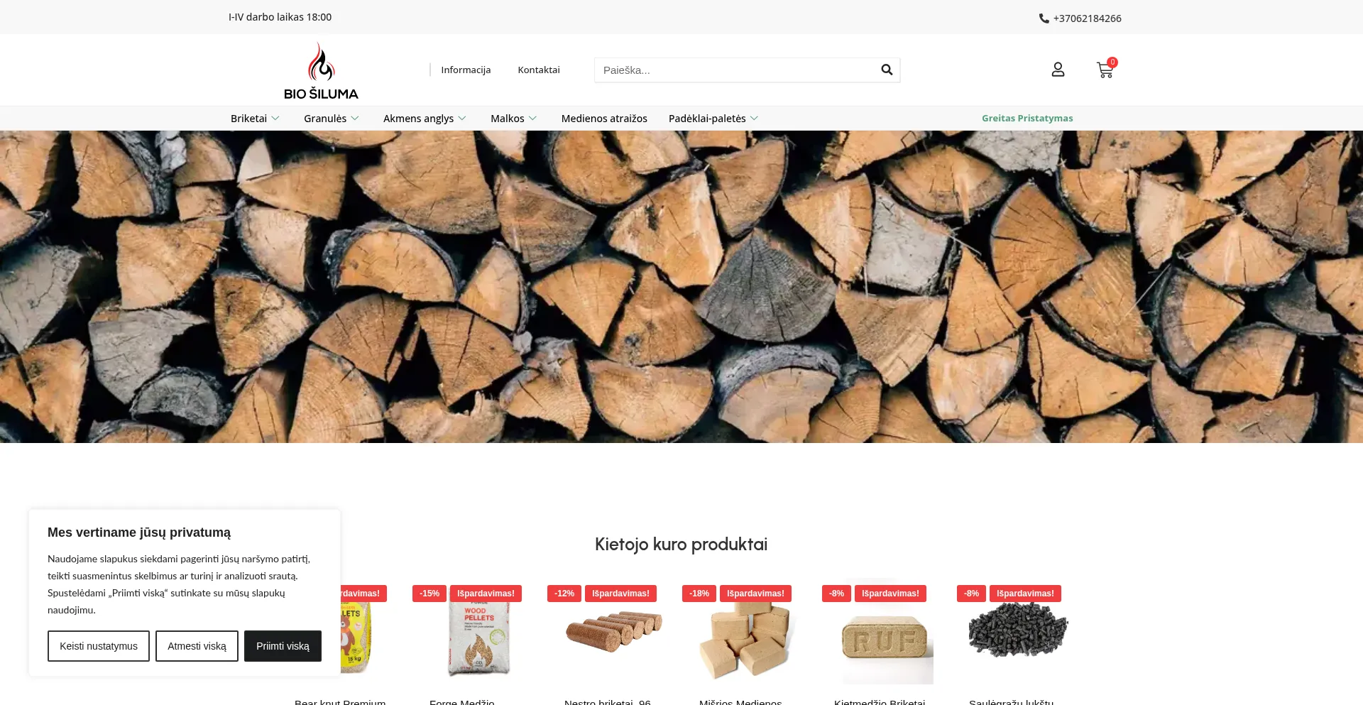 Bio kuro prekyba: Briketai, granulės, malkos, anglys