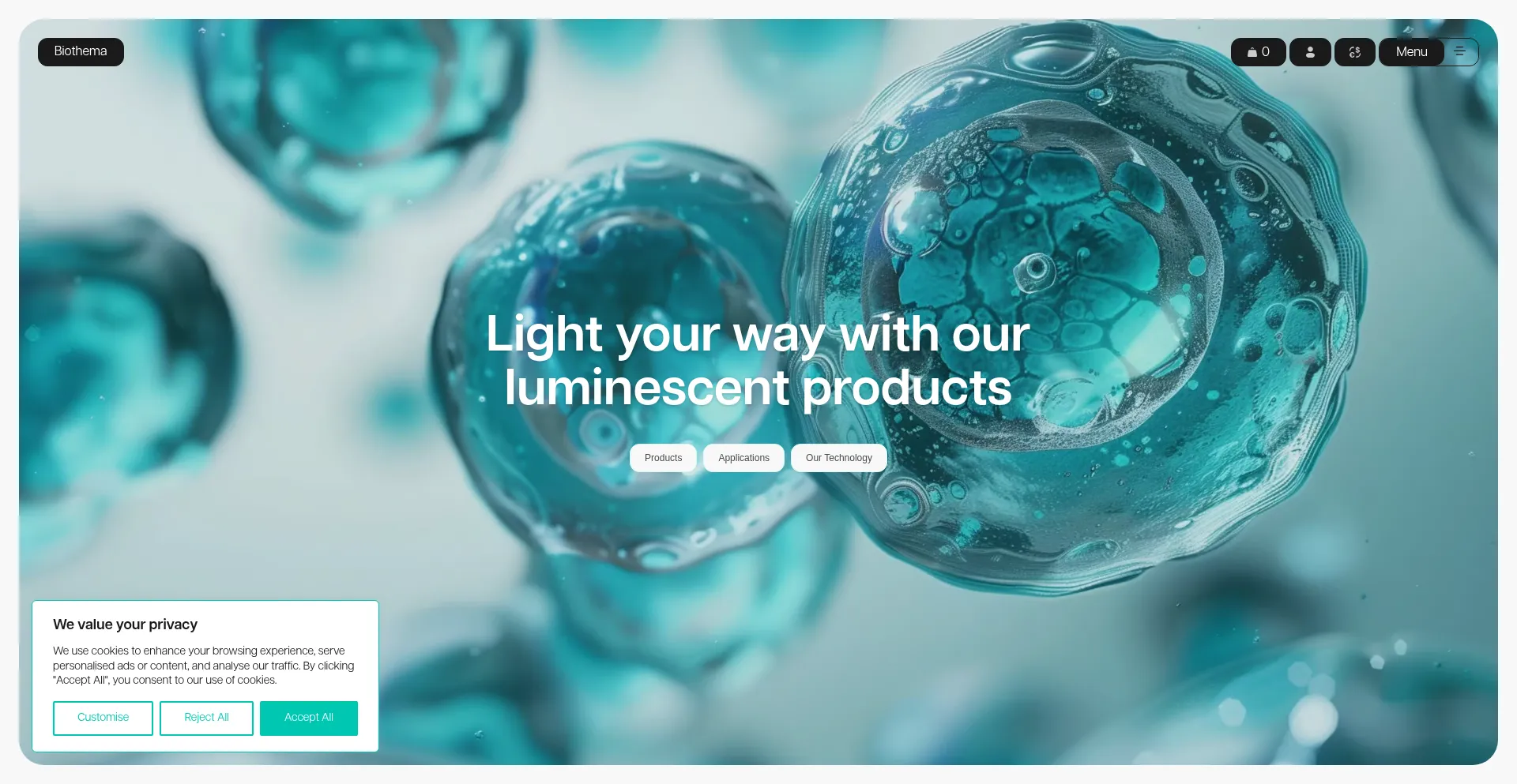 该网站实现符合GDPR或CCPA等隐私法规的cookie同意机制。这表明 biothema.com 遵守数据保护标准并为用户提供对个人数据收集实践的控制。