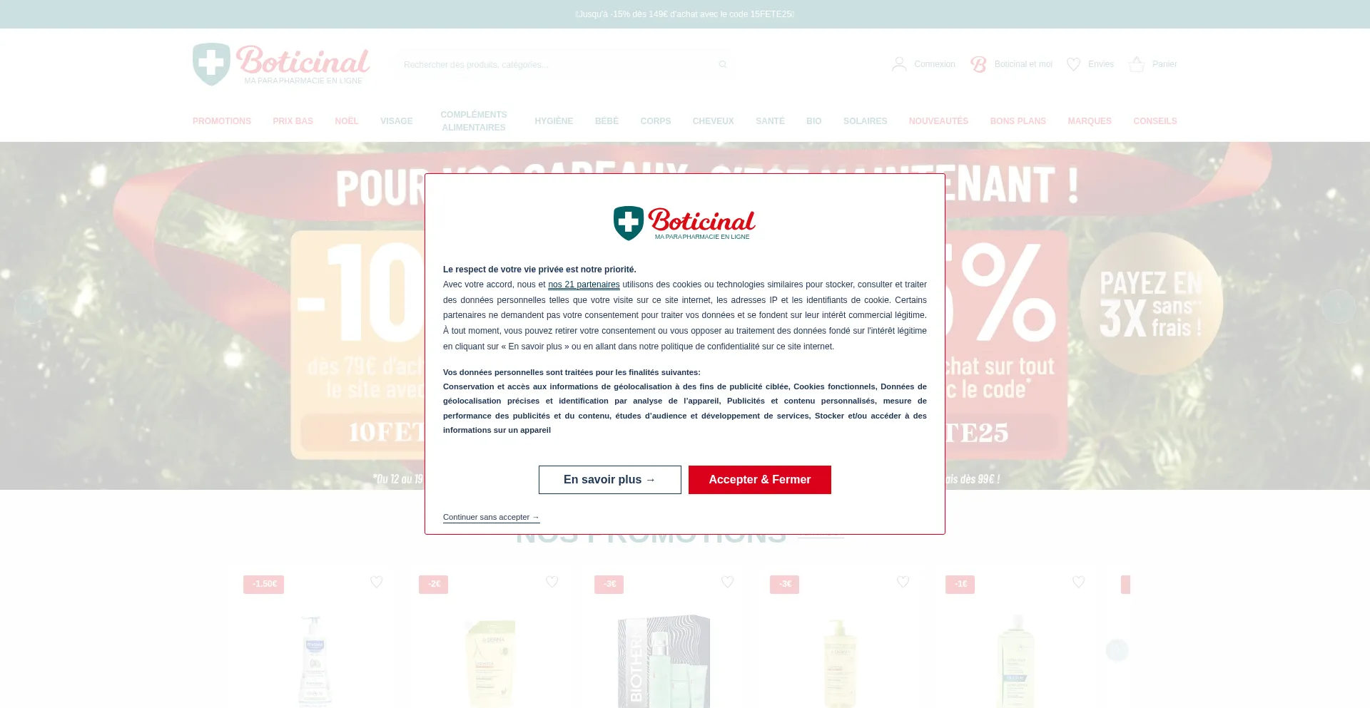 Vos produits favoris à petits prix avec la parapharmacie Boticinal : soins, produits bébé, hygiène, santé et compléments alimentaires de grandes marques