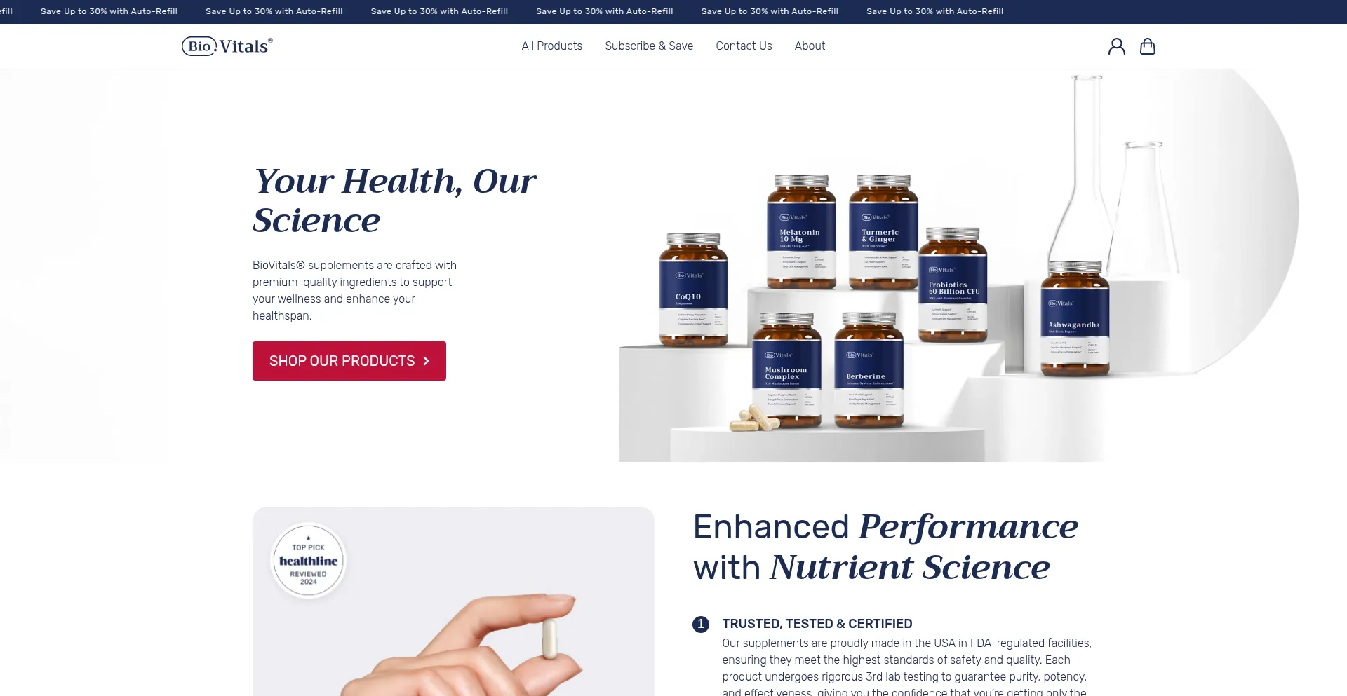 分析表明 biovitals.com 作为电子商务平台运营,促进商品或服务的在线交易。该网站实现了购物车功能、支付处理系统和产品目录功能,这些是商业零售运营的典型特征。