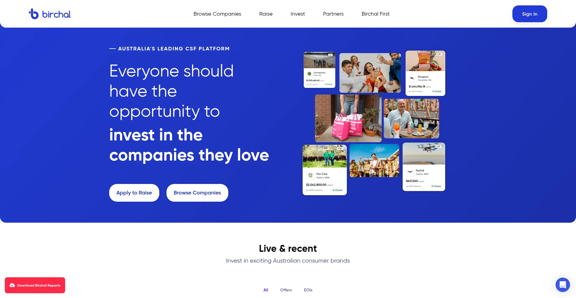 Birchal is an Australian Equity Crowdfunding platform for consumer brands and companies. Birchal connects investors with brands.