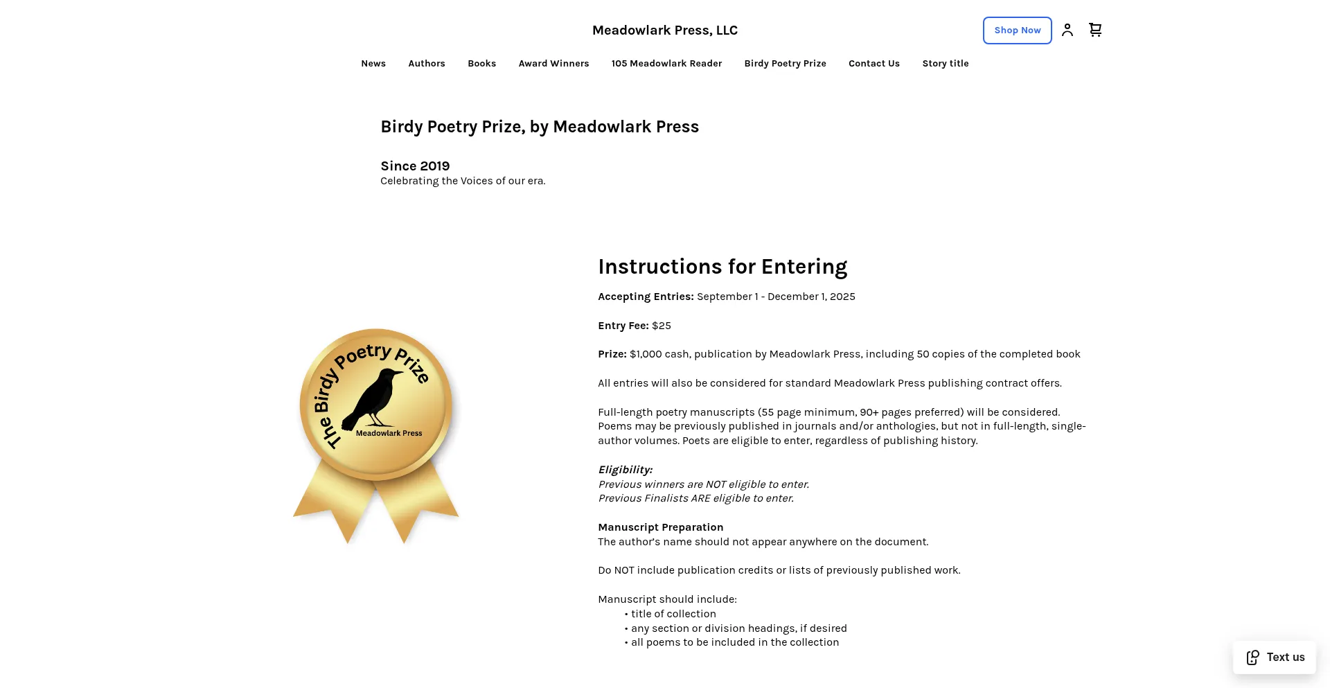 Birdy Poetry Prize | Meadowlark Press, LLC