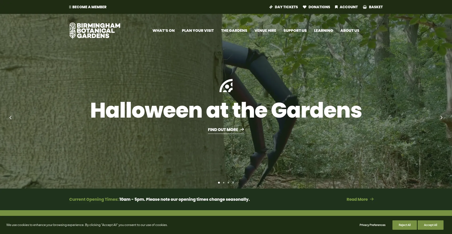 该网站实现符合GDPR或CCPA等隐私法规的cookie同意机制。这表明 birminghambotanicalgardens.org.uk 遵守数据保护标准并为用户提供对个人数据收集实践的控制。