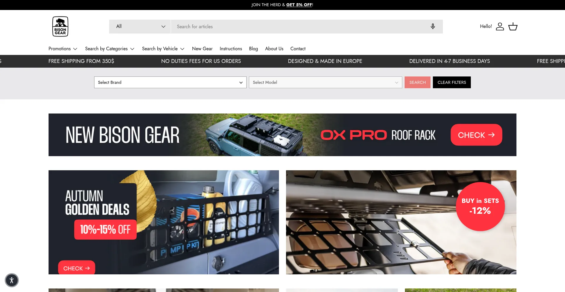 Bison Gear is a Polish brand built by off-road and family enthusiasts. We design and manufacture durable, functional 4x4 accessories – roof racks, bumpers, skid plates, mounts...