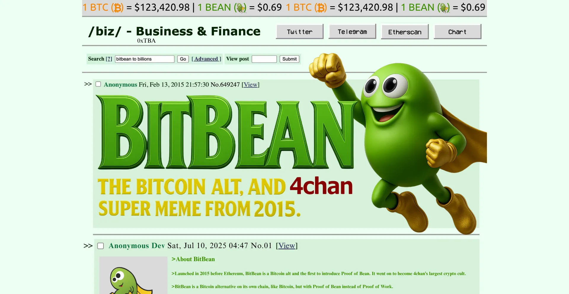 Launched in 2015 before Ethereum, BitBean is a Bitcoin alt and the first to introduce Proof of Bean. It went on to become 4chan’s largest crypto cult.