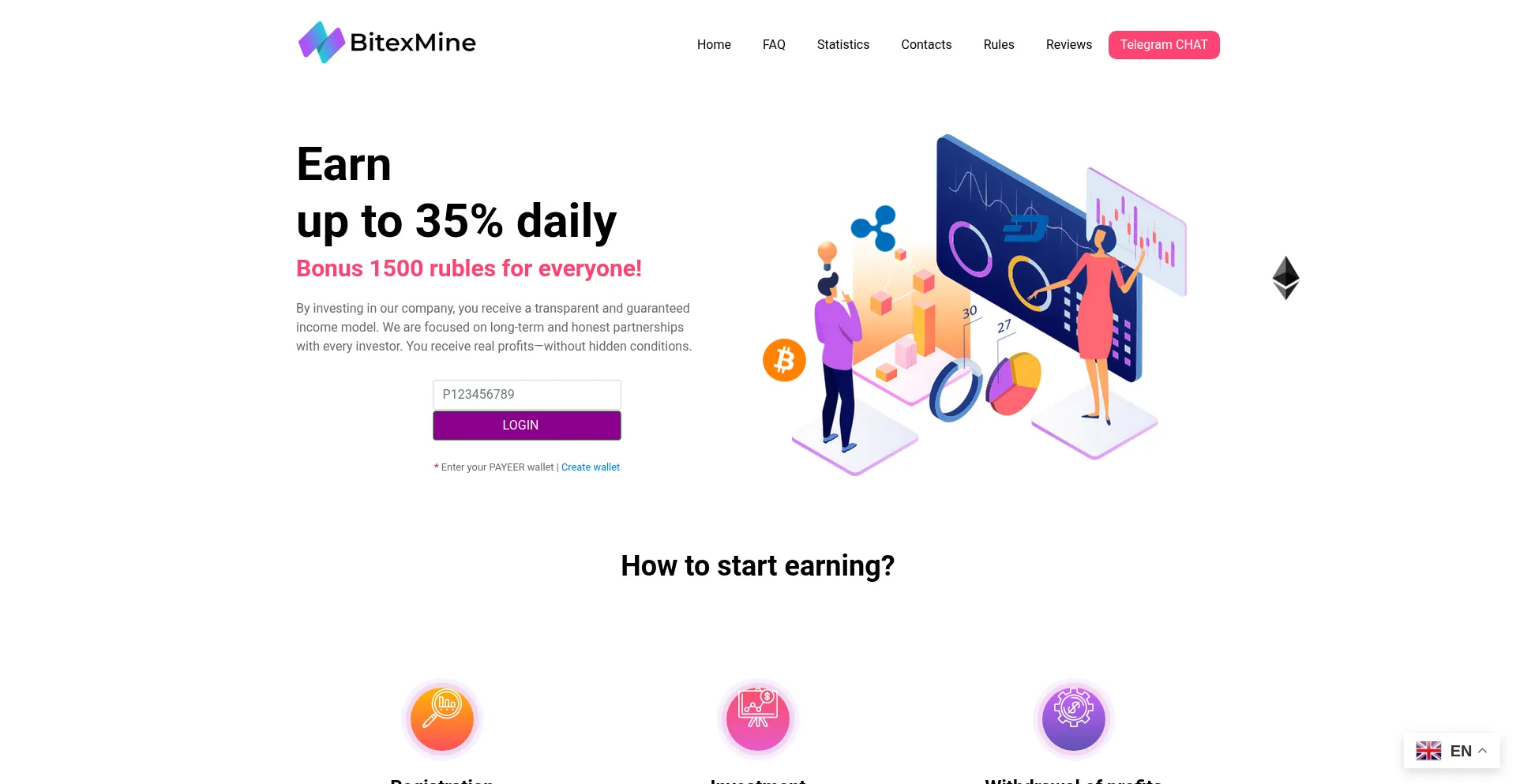 该网站实现数据收集表单,请求个人信息,包括姓名、电子邮件地址、电话号码或其他敏感详细信息。用户应验证 bitexmine.pro 的合法性并在提交个人数据前查看隐私政策。