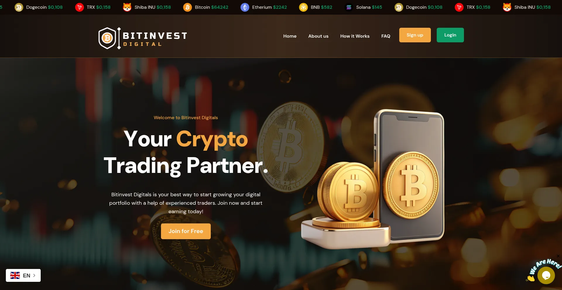 bitinvest-digital.com 使用 Bootstrap,这是一个广泛采用的开源响应式网页开发框架。Bootstrap 通过标准化组件和样式实现移动友好界面的高效创建。