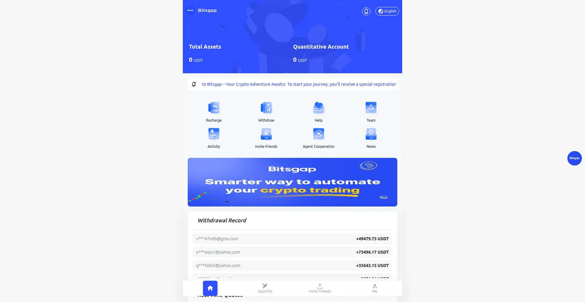 帮助保护他人,快在社交媒体上分享此页面吧!知道bitsgaptrade.com的人越多,骗子就越难得逞。 通过在社交媒体上分享此页面,帮助更多人发现可靠的bitsgaptrade.com吧!