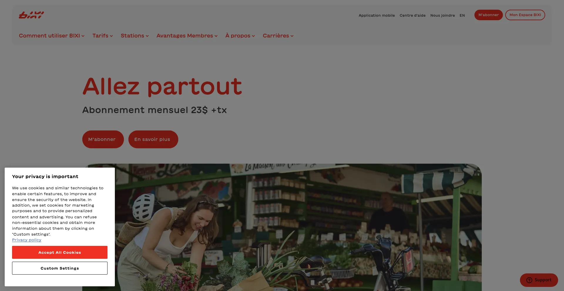 该网站实现符合GDPR或CCPA等隐私法规的cookie同意机制。这表明 bixi.com 遵守数据保护标准并为用户提供对个人数据收集实践的控制。