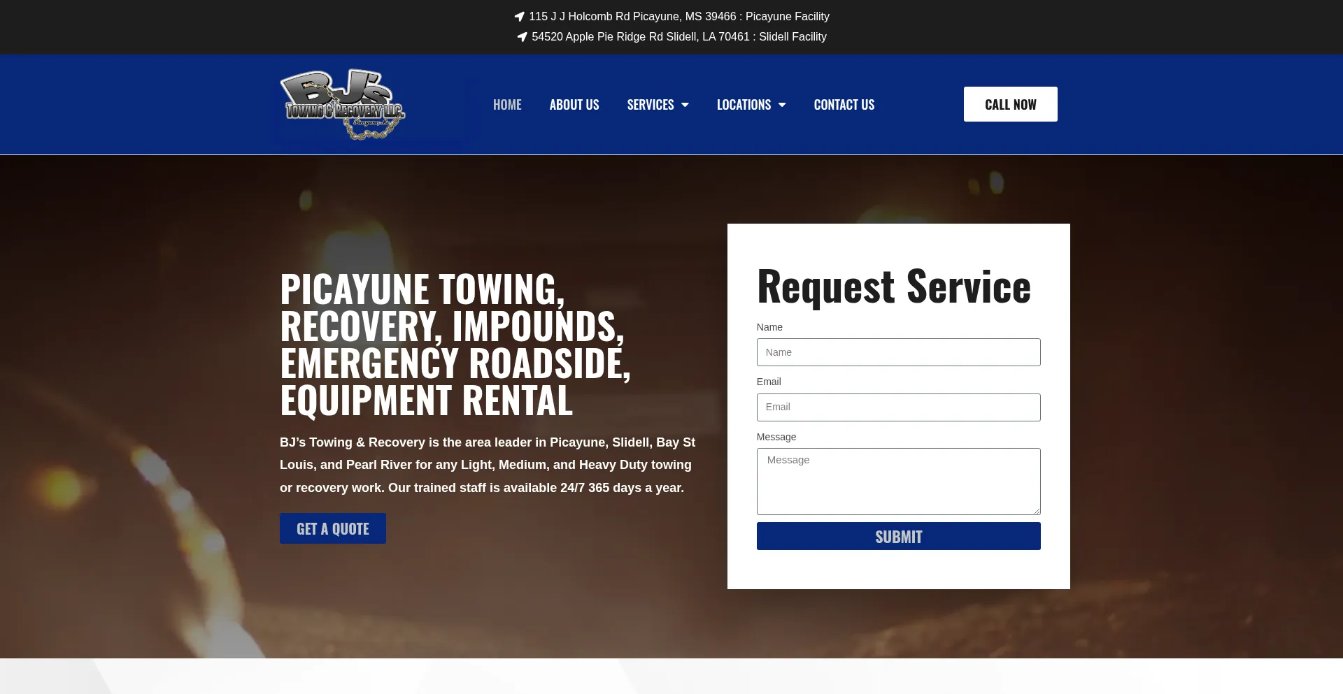 BJ’s Towing & Recovery is the area leader in Picayune, Slidell, Bay St Louis, and Pearl River for any Light, Medium, and Heavy Duty towing or recovery work.