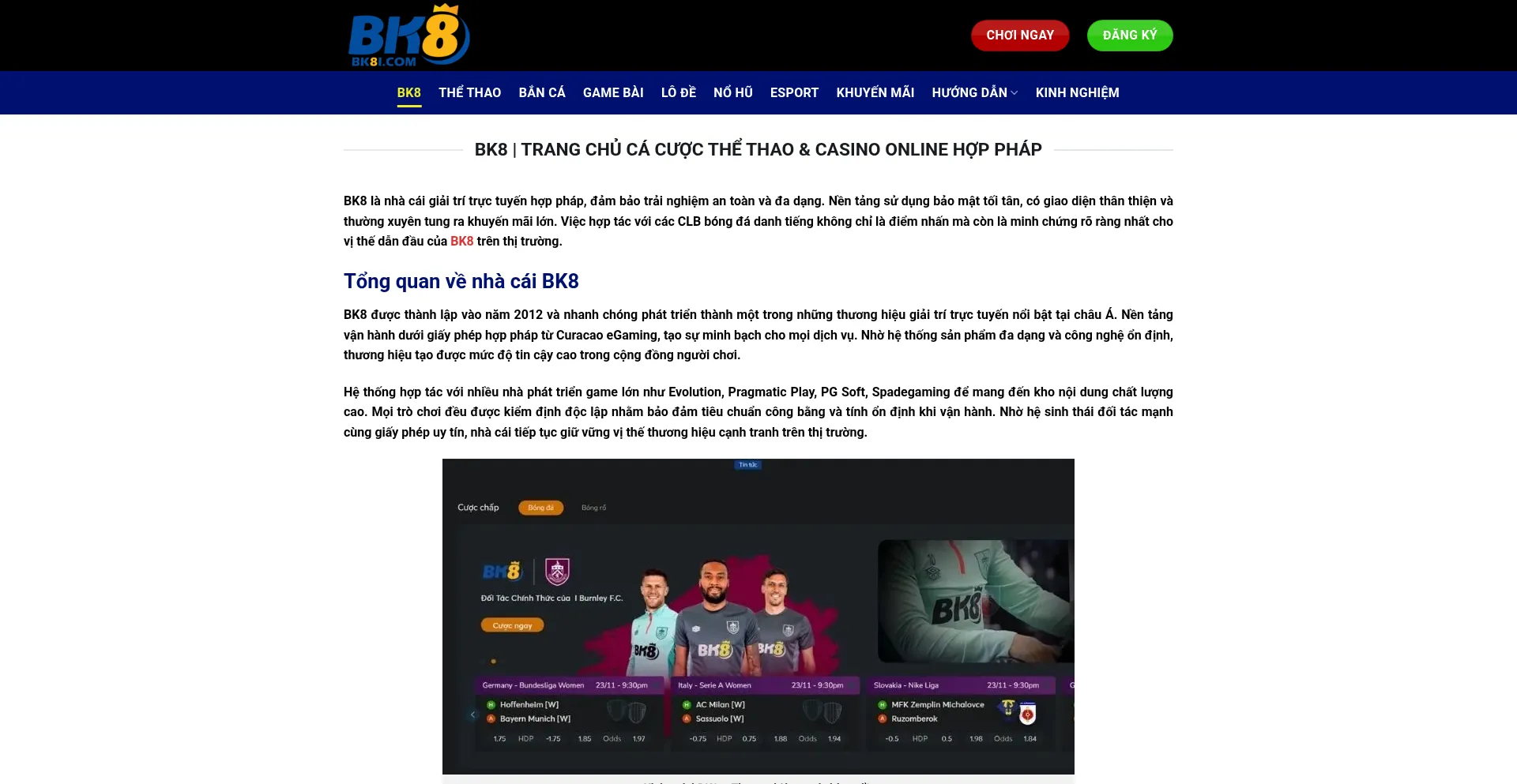 BK8 | Trang Chủ Cá Cược Thể Thao & Casino Online Hợp Pháp