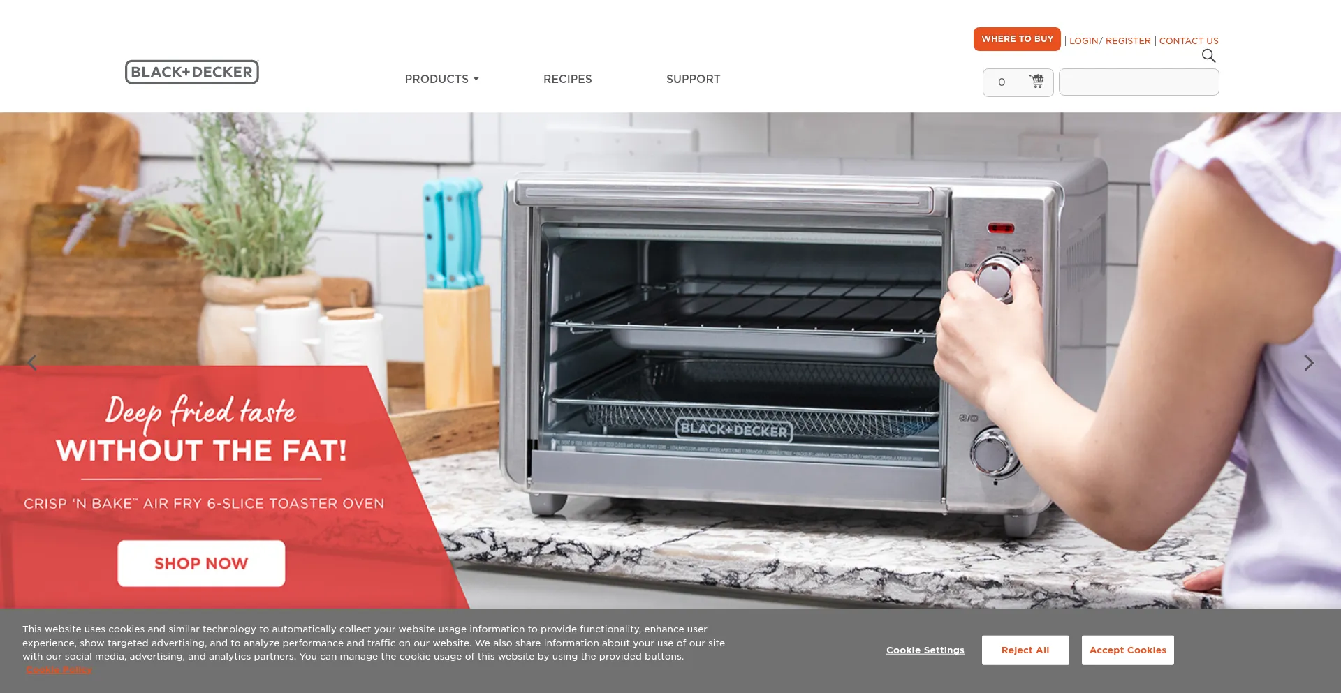 该网站实现符合GDPR或CCPA等隐私法规的cookie同意机制。这表明 blackanddeckerappliances.com 遵守数据保护标准并为用户提供对个人数据收集实践的控制。
