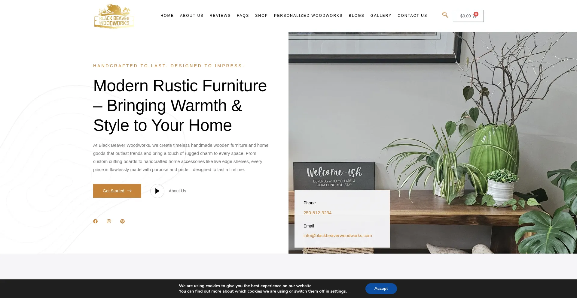 该网站实现符合GDPR或CCPA等隐私法规的cookie同意机制。这表明 blackbeaverwoodworks.com 遵守数据保护标准并为用户提供对个人数据收集实践的控制。