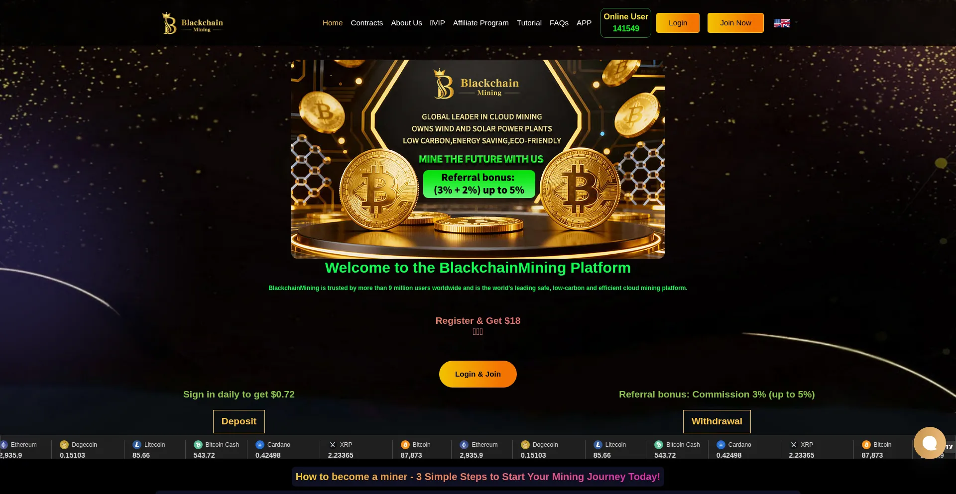 网站 blackchainmining.com 可能提供云挖矿服务或加密货币挖矿投资。一些平台提供合法的挖矿租赁服务,而其他平台可能使用虚假的挖矿仪表板来显示无法提取的虚拟收益。