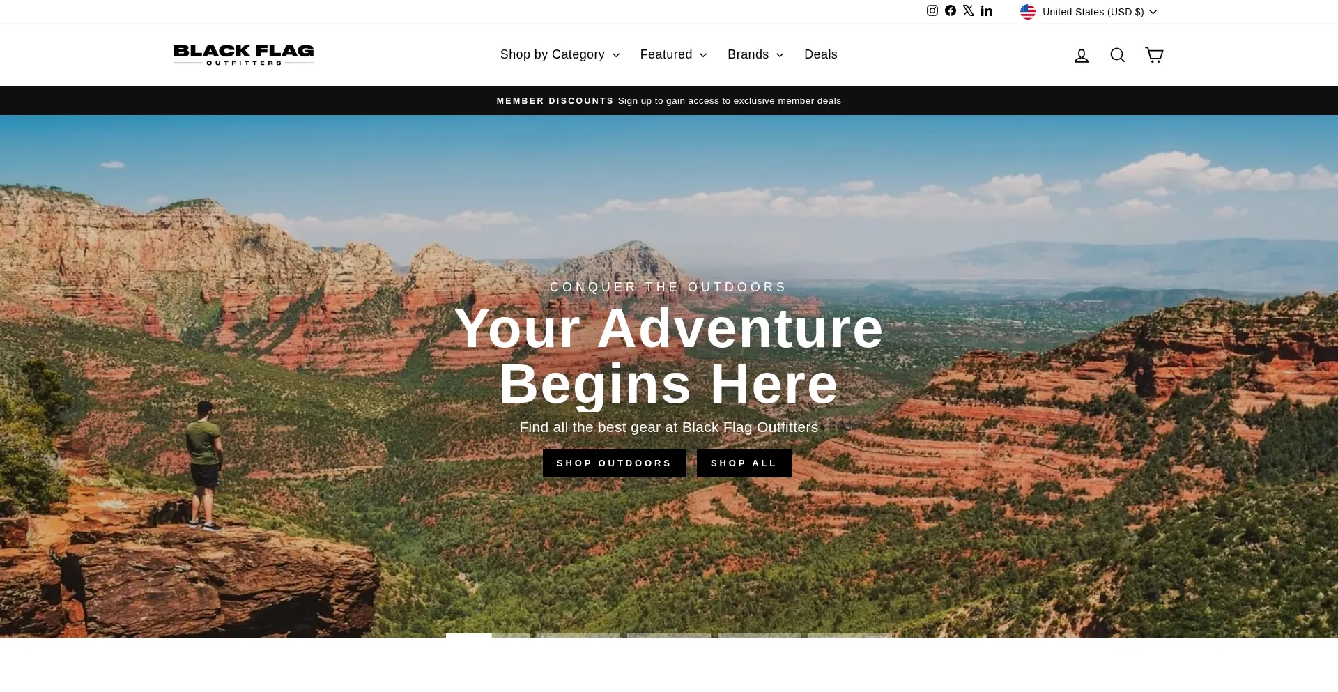 网站上存在社交媒体链接表明 blackflagoutfitters.com 在社交媒体上维护官方账户,这是可信度和参与度的积极信号。