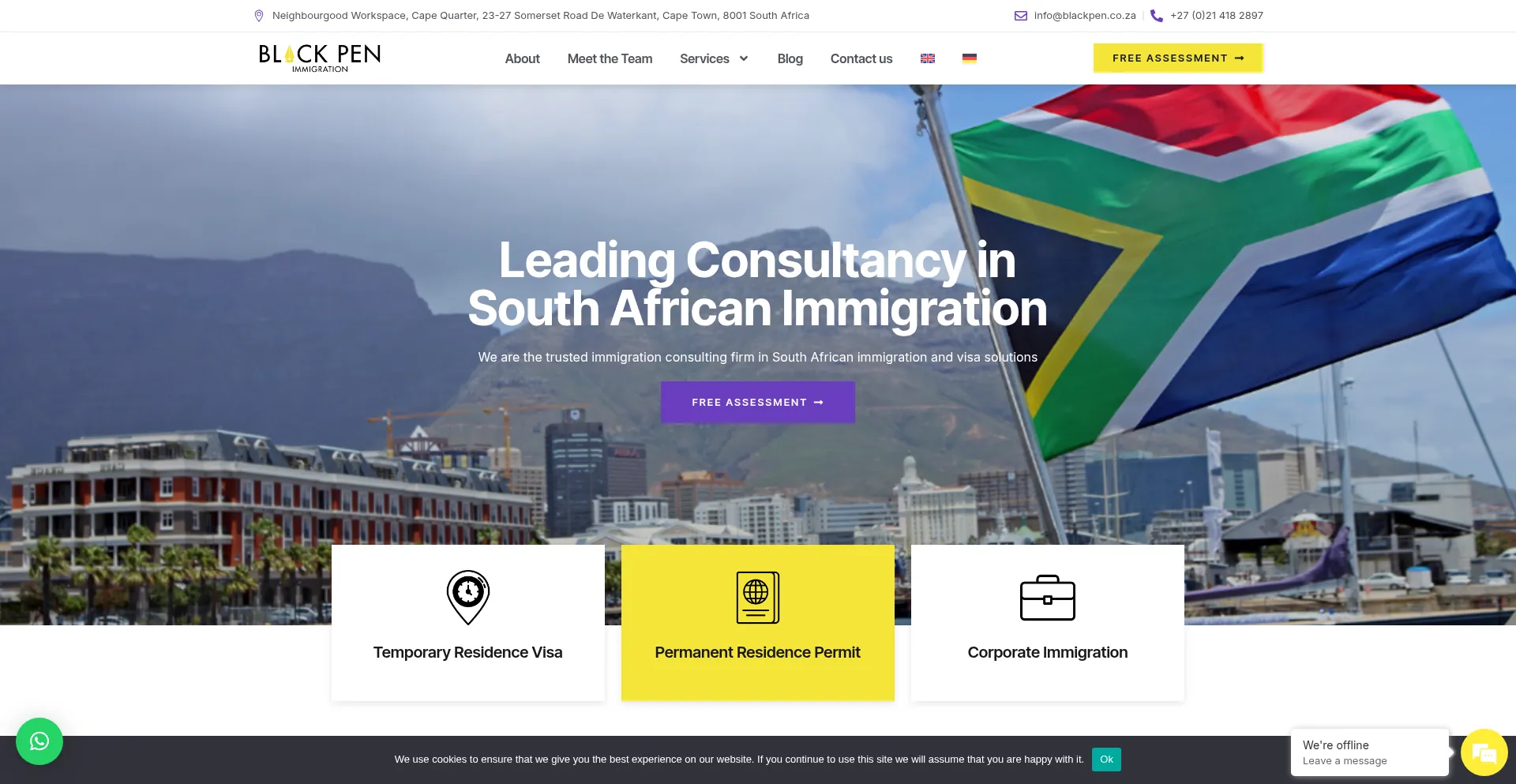 该网站实现符合GDPR或CCPA等隐私法规的cookie同意机制。这表明 blackpen-immigration.com 遵守数据保护标准并为用户提供对个人数据收集实践的控制。