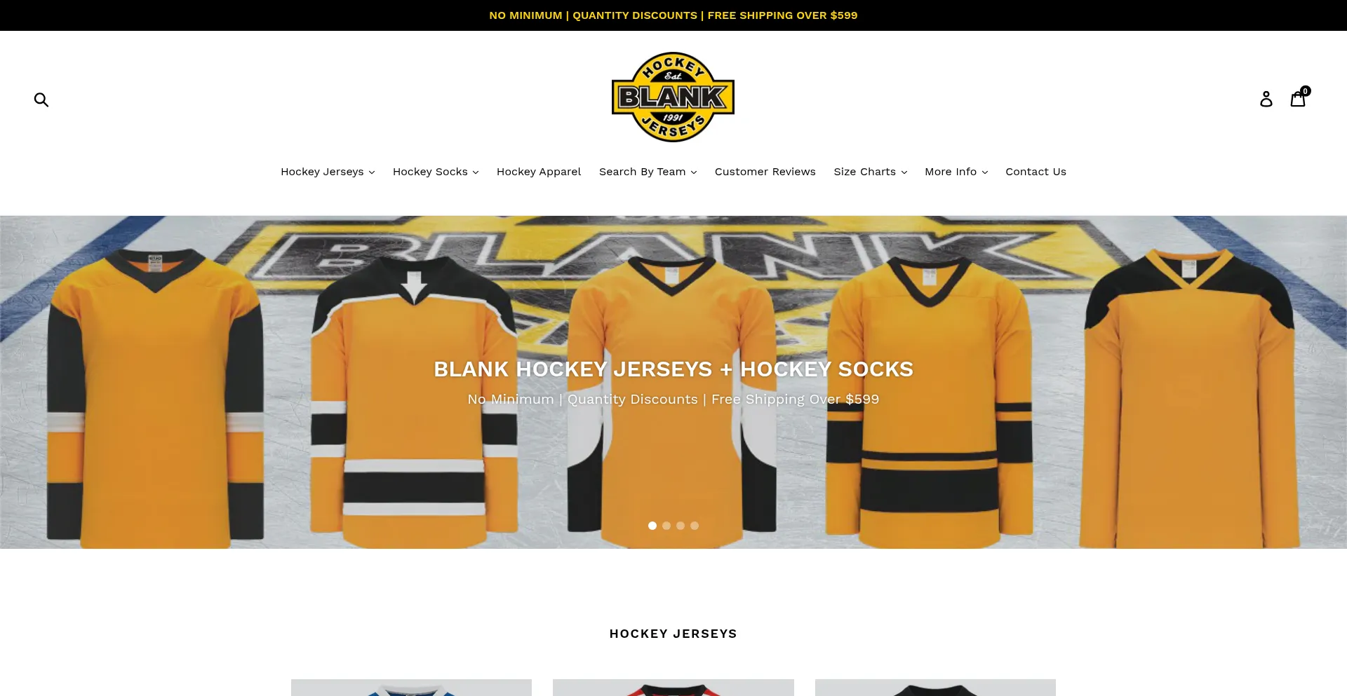 Blank Hockey Jerseys, Custom Hockey Jerseys and Ice Hockey Socks for Teams, Leagues, and Camps. No Minimum Order, Quantity Discounts, and Free Shipping on Orders over $599!