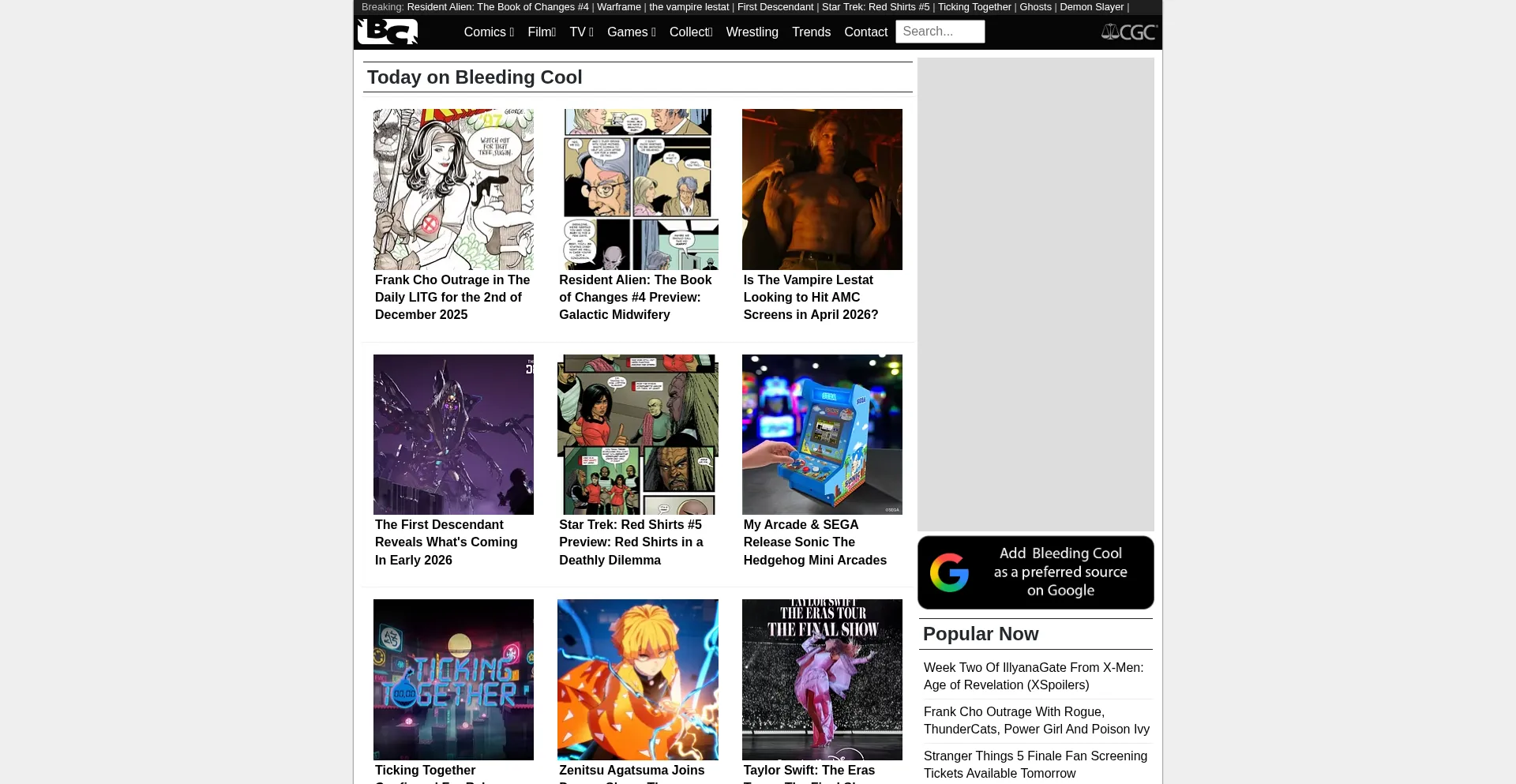 Bleeding Cool is your independent source for news about comic books, film, tv, games, collectibles, and more.