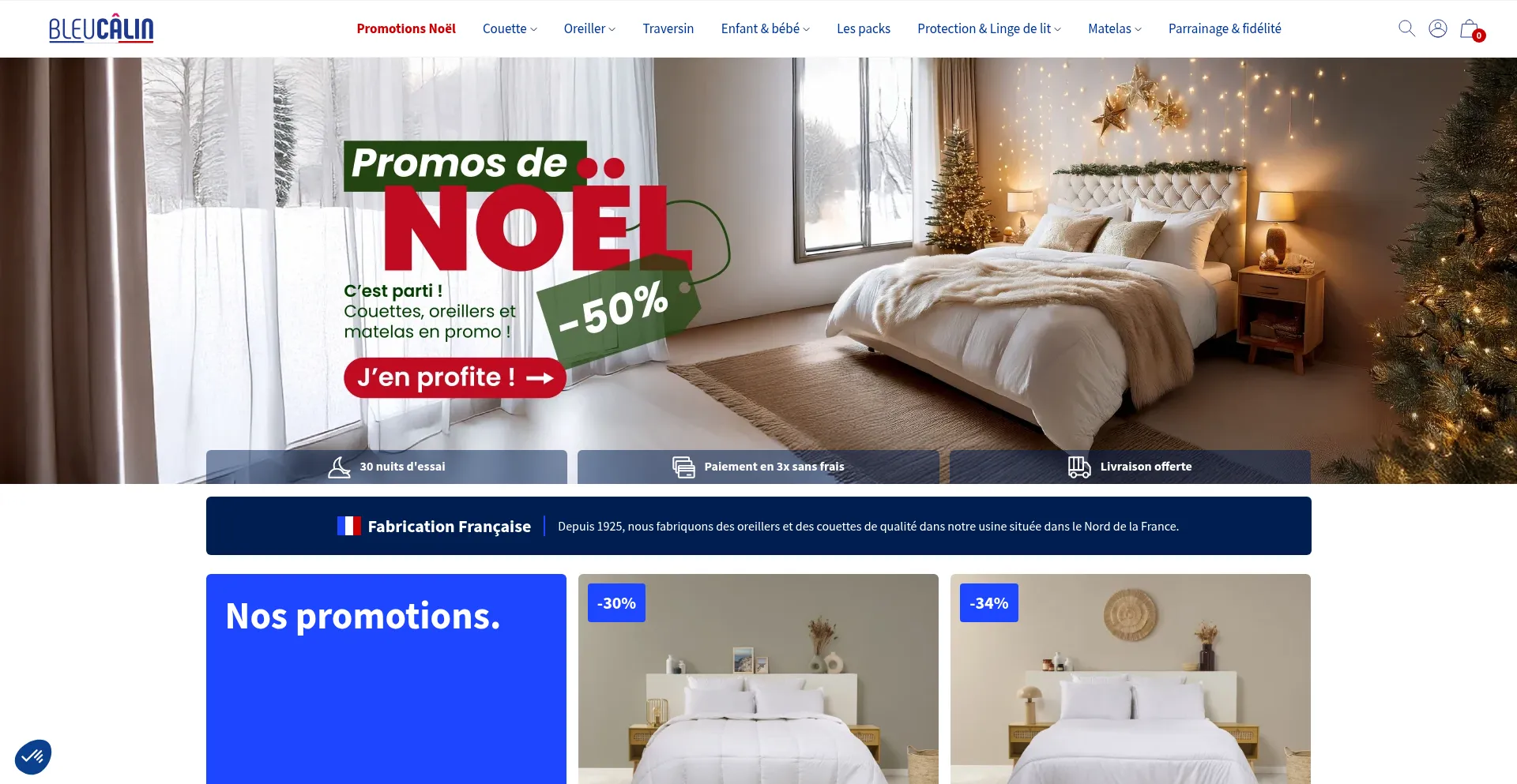 Bleu Câlin vous propose depuis 1925 une large gamme de couettes et oreillers 100 % made in France. Livraison gratuite | 30 nuits d'essai | Paiement en 3x