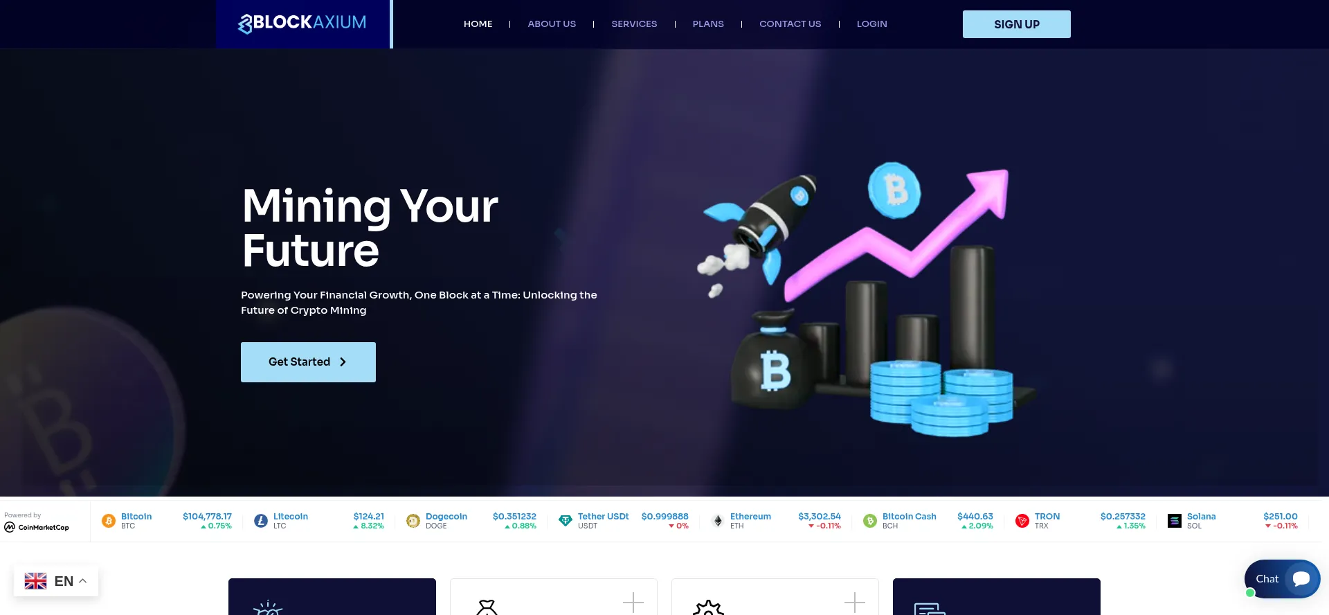 网站 blockaxium.com 可能提供云挖矿服务或加密货币挖矿投资。一些平台提供合法的挖矿租赁服务,而其他平台可能使用虚假的挖矿仪表板来显示无法提取的虚拟收益。