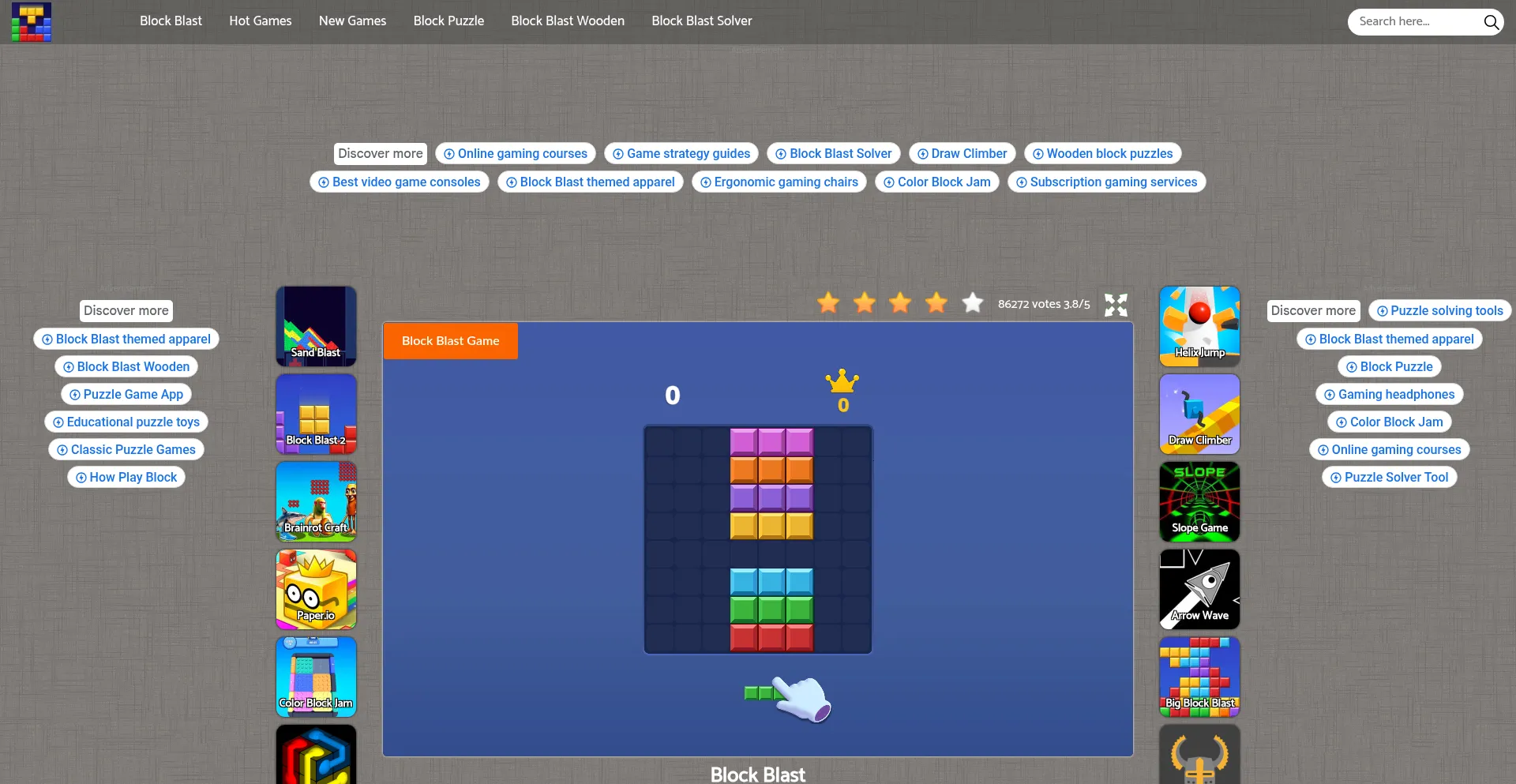Block Blast is a fun and addicting classic puzzle game. Arrange blocks of the same color vertically or horizontally to remove them from the screen.