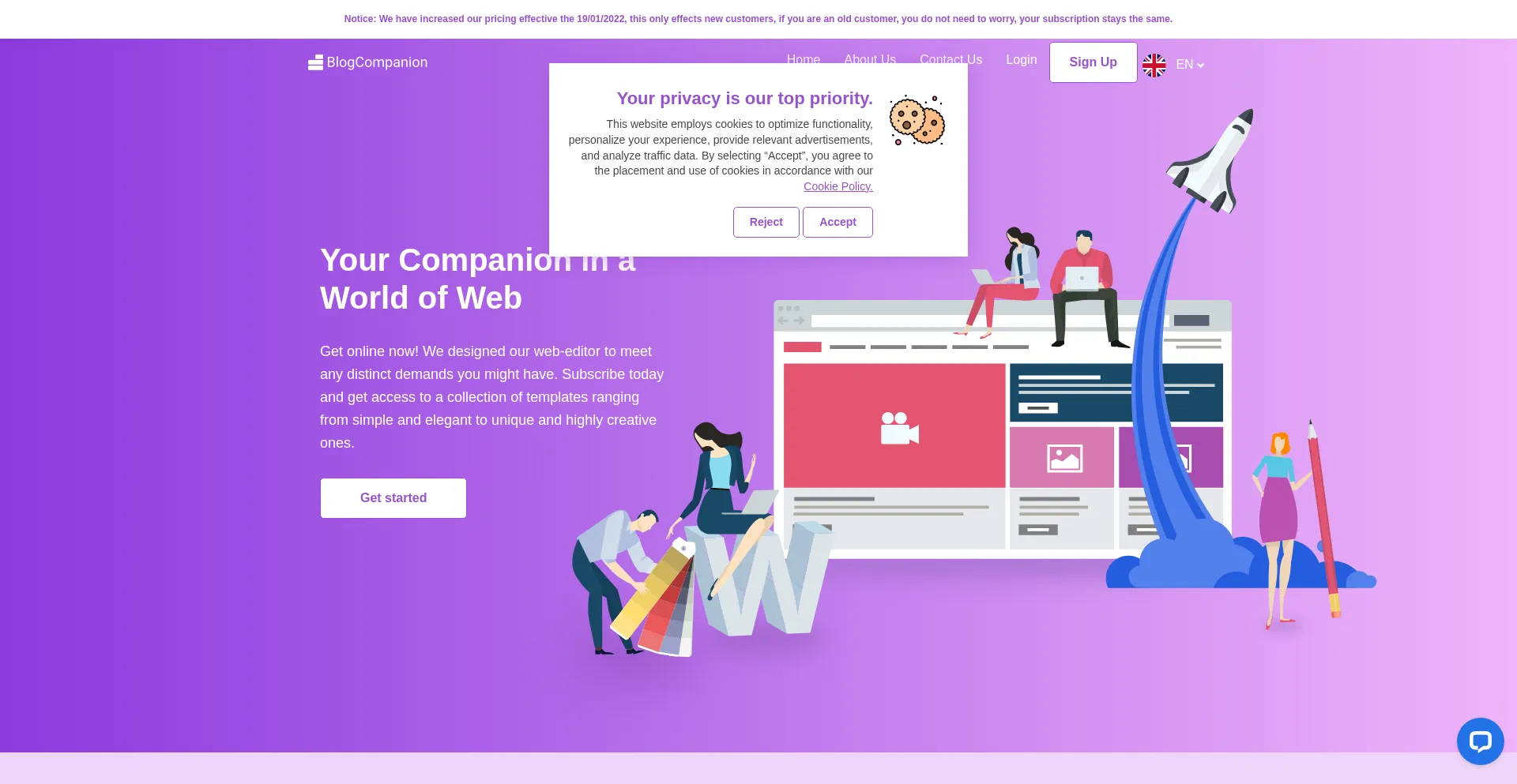 该域名在延长期间保持活跃状态,表明运营稳定性和已建立的网络存在。blogcompanion.io 的这种长寿性表明合法的商业运营和随时间推移的持续用户参与。