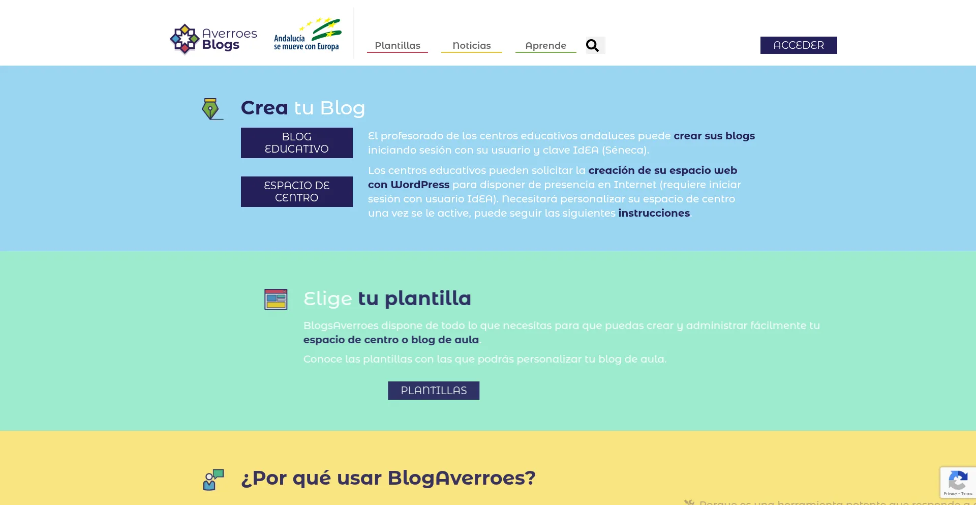 El profesorado de los centros educativos andaluces puede crear sus blogs iniciando sesión con su usuario y clave IdEA (Séneca).