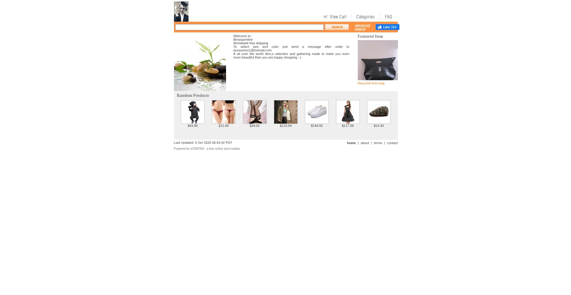 分析表明 blowuponline.ecrater.com 作为电子商务平台运营,促进商品或服务的在线交易。该网站实现了购物车功能、支付处理系统和产品目录功能,这些是商业零售运营的典型特征。