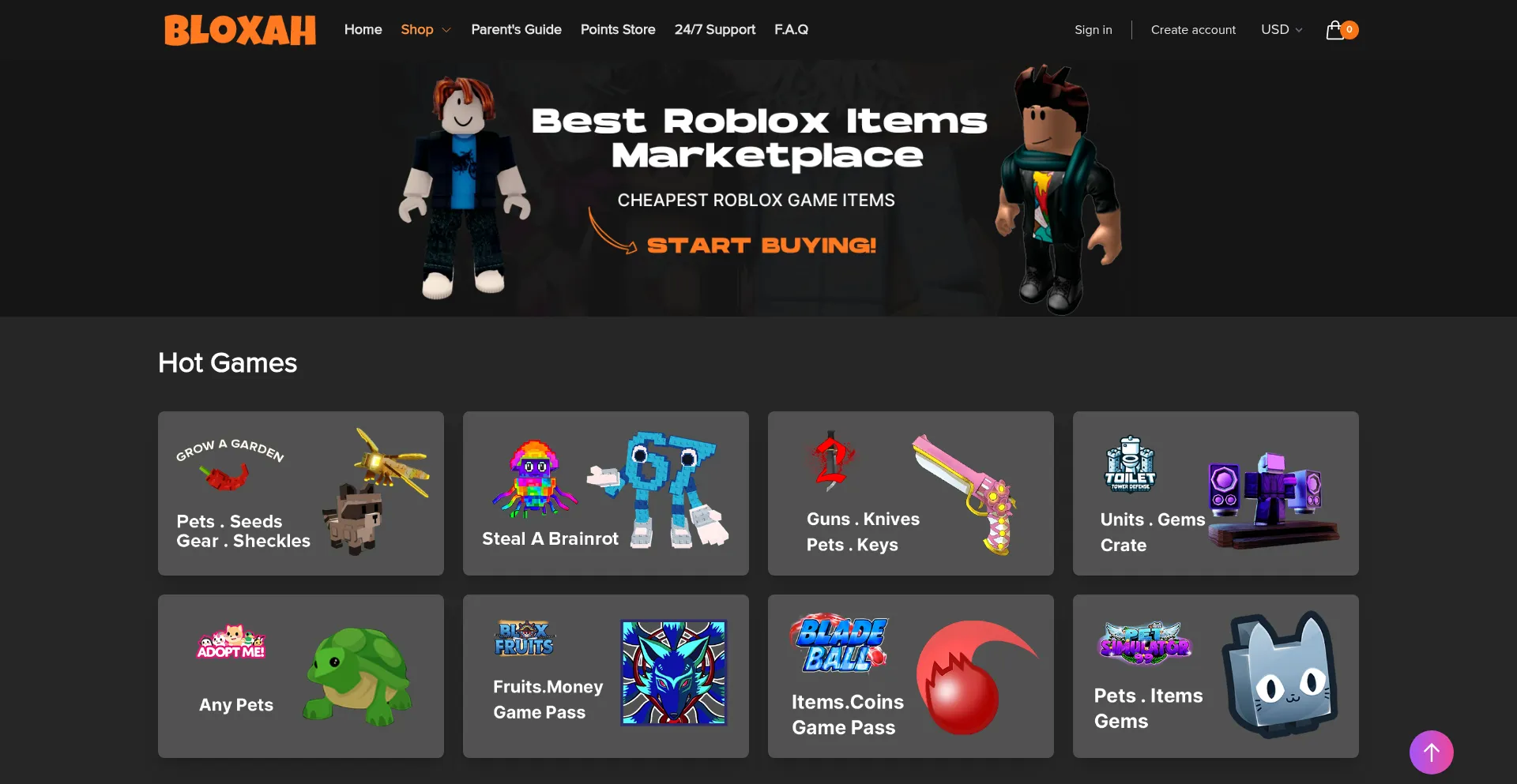 Bloxah | Roblox Game Shop – Buy Pets, Brainrots & Items
