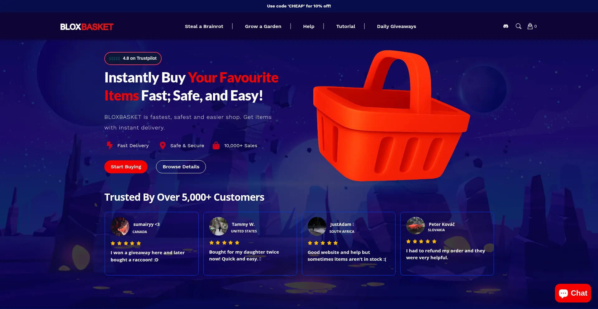 BloxBasket - Buy GAG Pets & Steal a Brainrot Items | Fast Delivery
