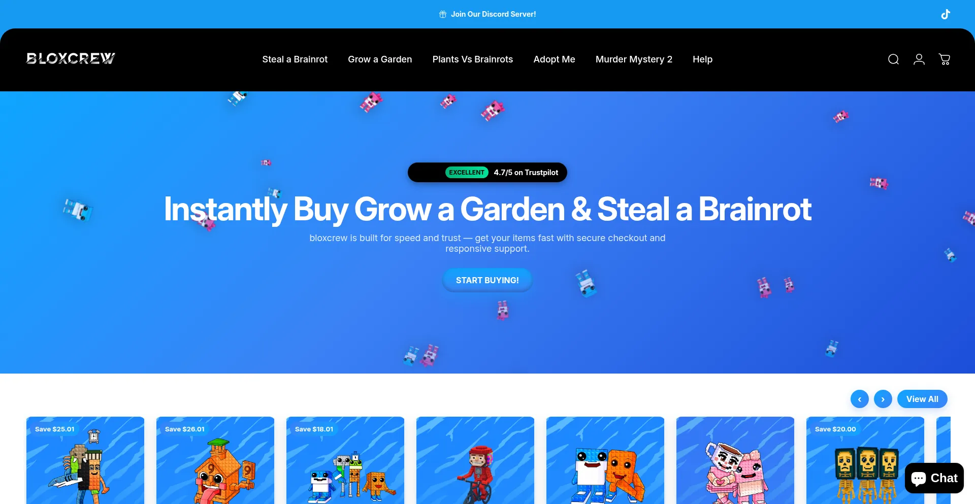 BloxCrew – Best Prices on Steal a Brainrot, Grow a Garden, Adopt Me, MM2 and PvB. Fast delivery, secure checkout, and trusted service.
