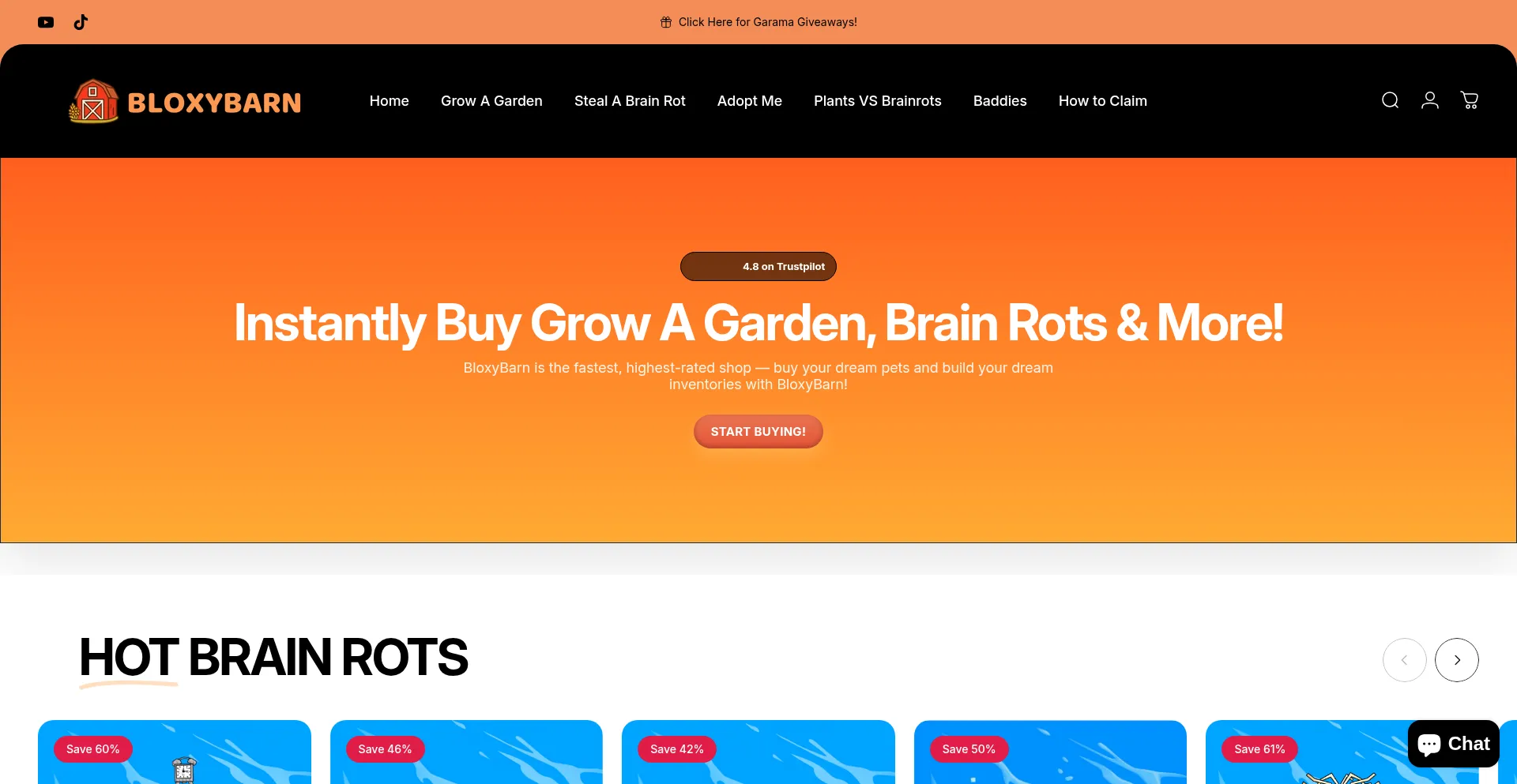 BloxyBarn is the fastest, cheapest, and safest shop for GAG, SAB, Adopt Me, and Baddies items. With our cheap prices and super quick delivery, you'll never want to shop somewher...