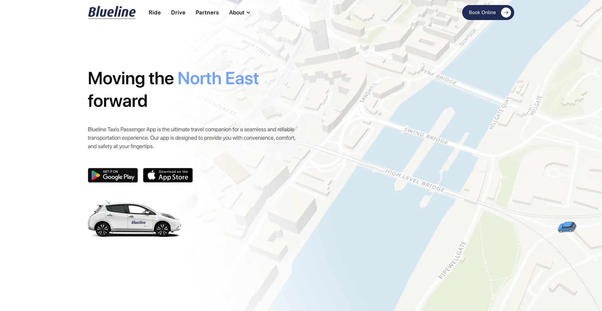 bluelinetaxis.com 拥有可用的 iOS 移动应用程序,表明为 Apple 设备用户提供跨平台可访问性。