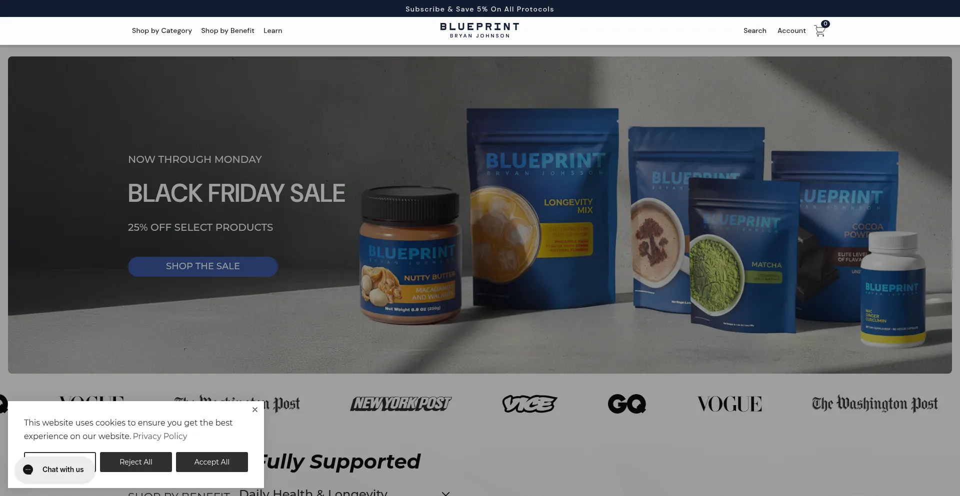 分析表明 blueprint.bryanjohnson.com 作为电子商务平台运营,促进商品或服务的在线交易。该网站实现了购物车功能、支付处理系统和产品目录功能,这些是商业零售运营的典型特征。